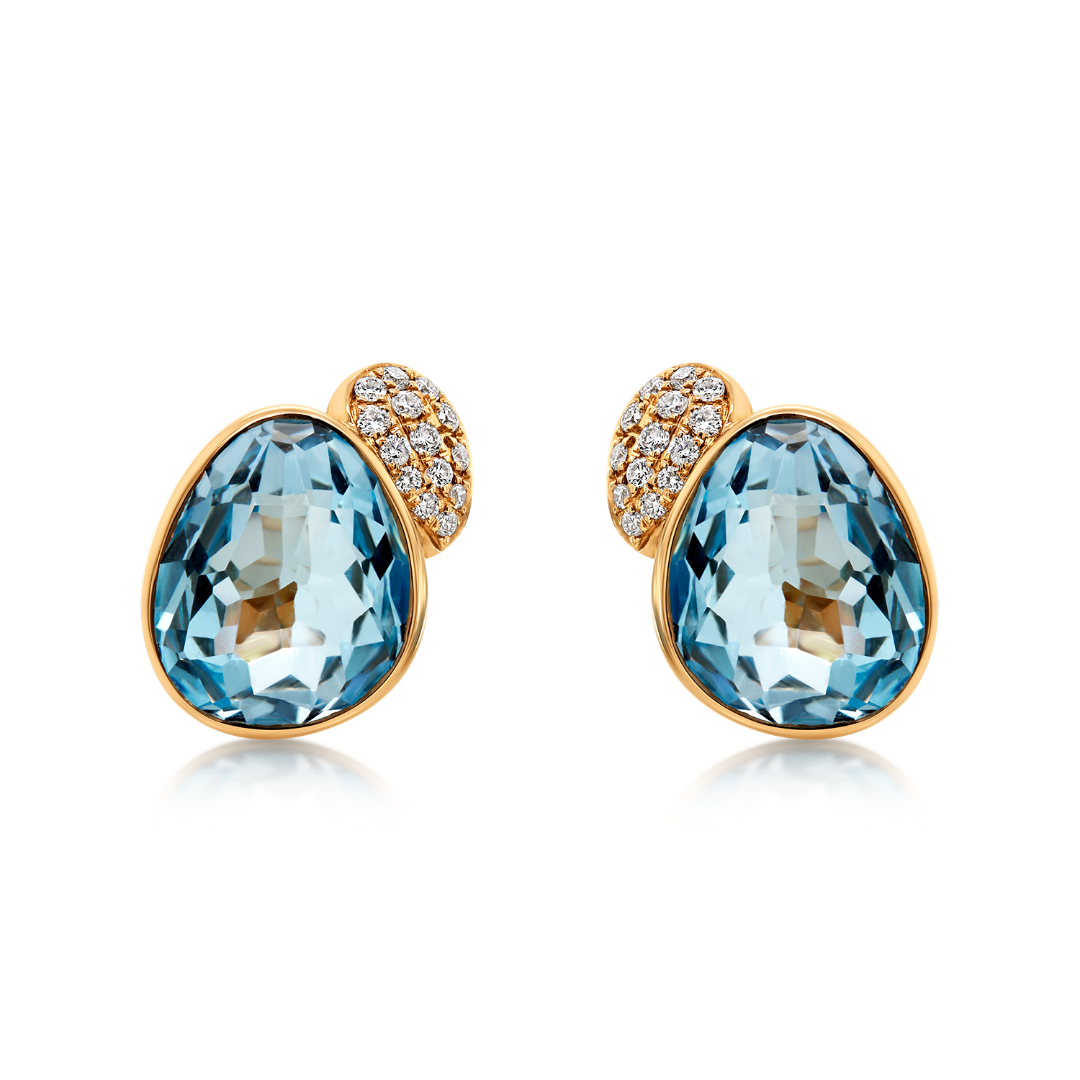 Cercei din aur roz de 18K, cu Diamante de 0.18ct. și două pietre Blue Topaz de 9.40ct.