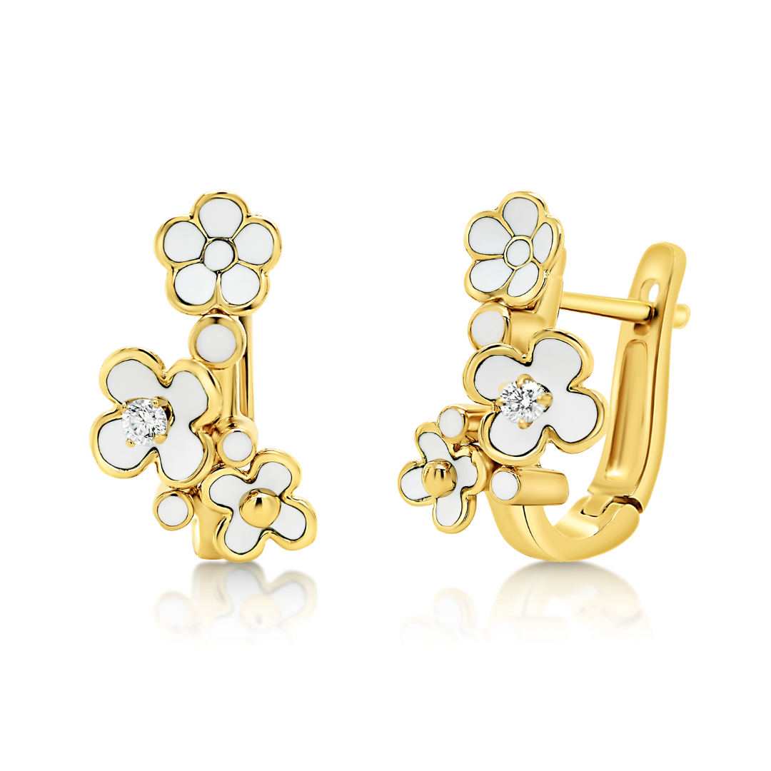 Cercei din aur galben de 14K cu două Diamante naturale de 0.06ct și Email alb.
