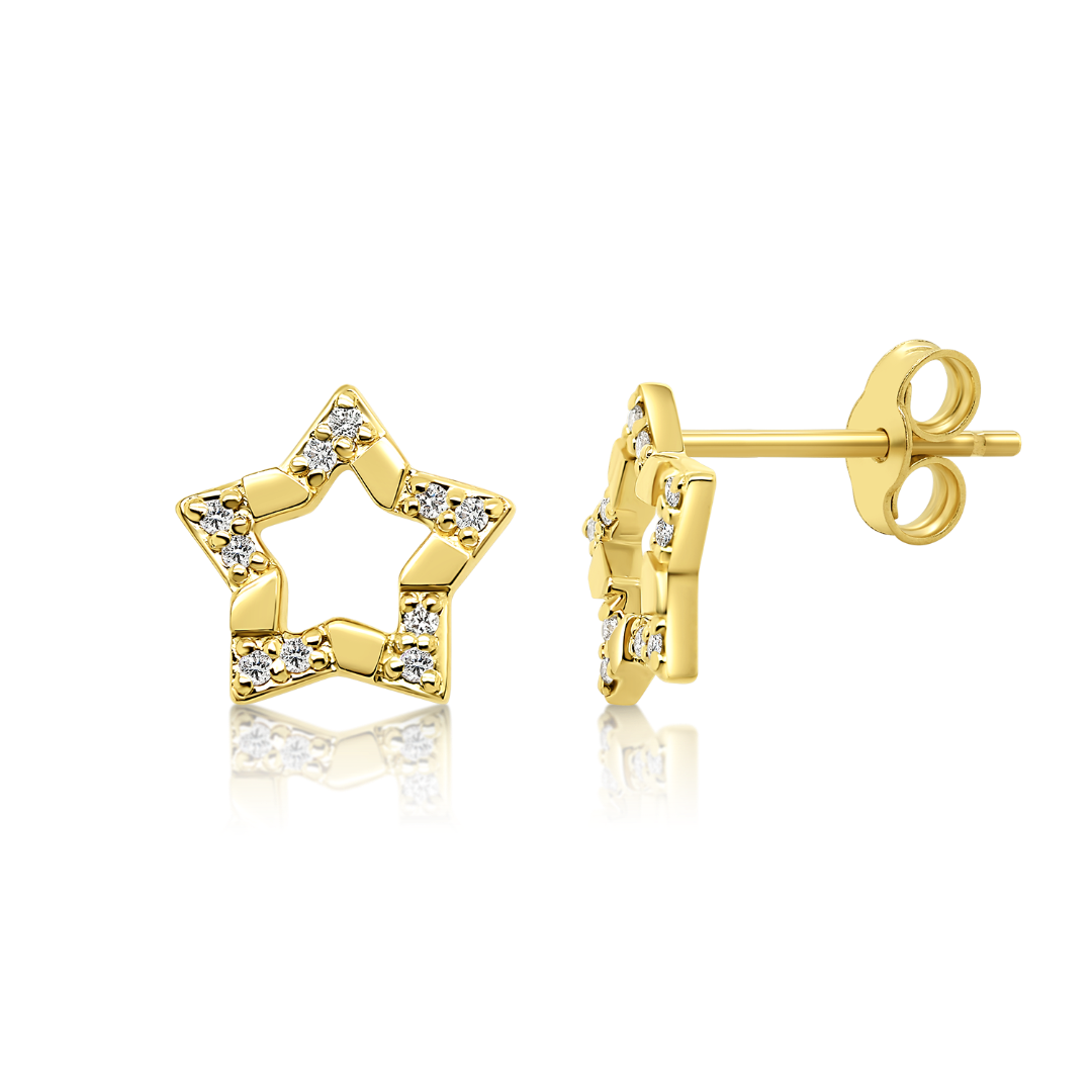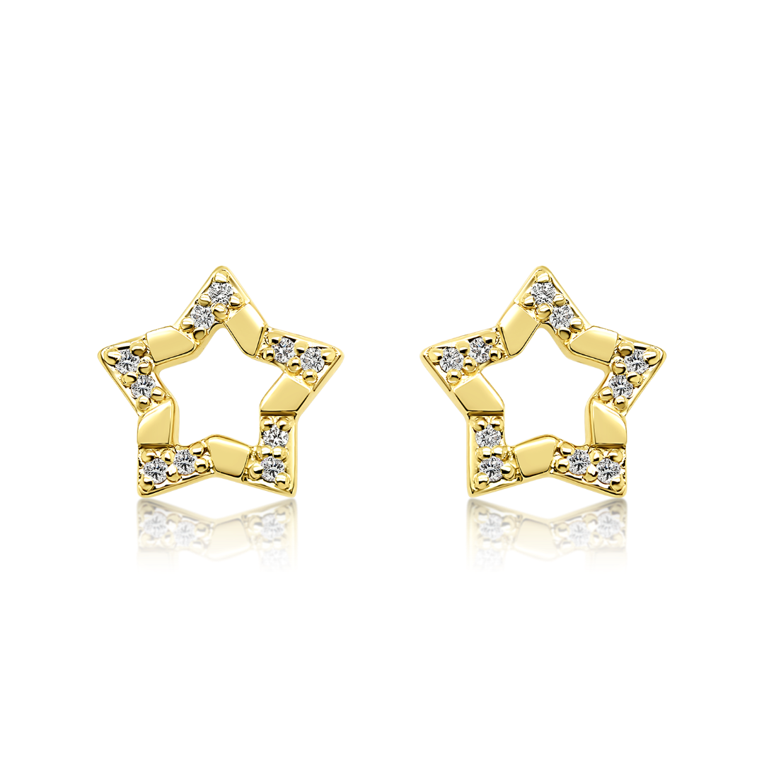 Cercei stea din aur galben de 14K cu 20 Diamante naturale.