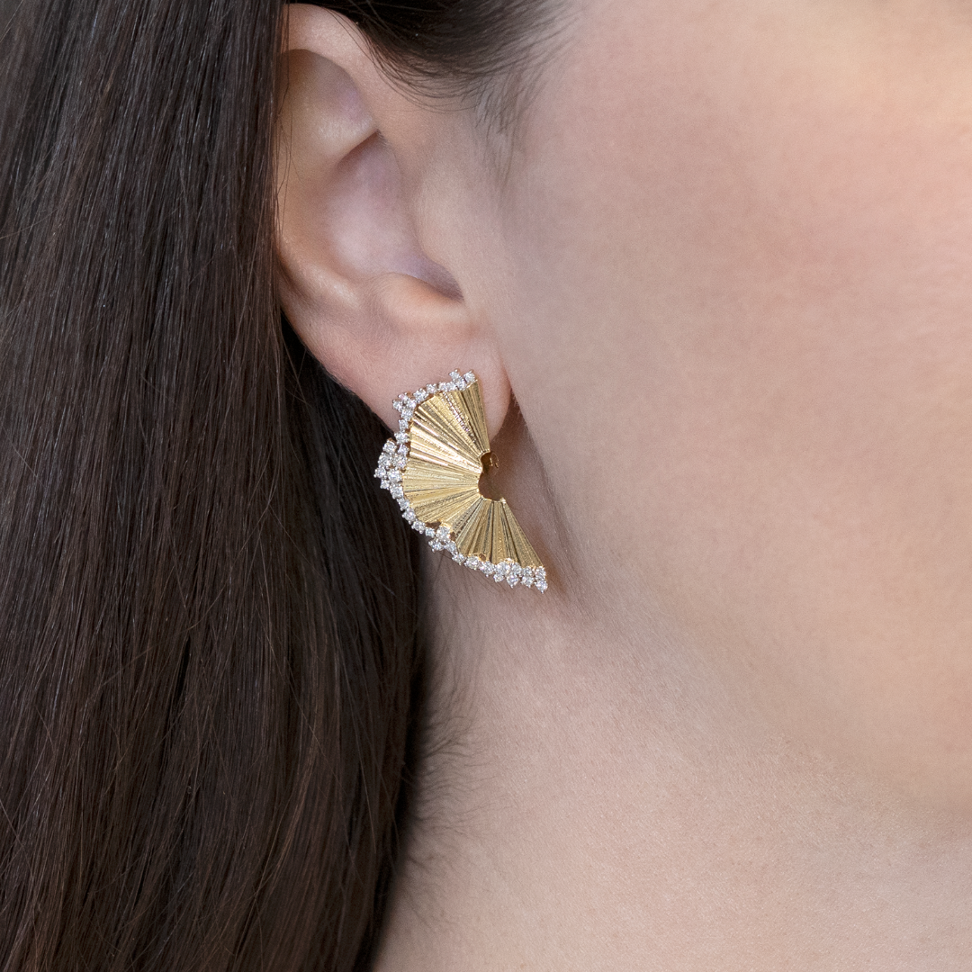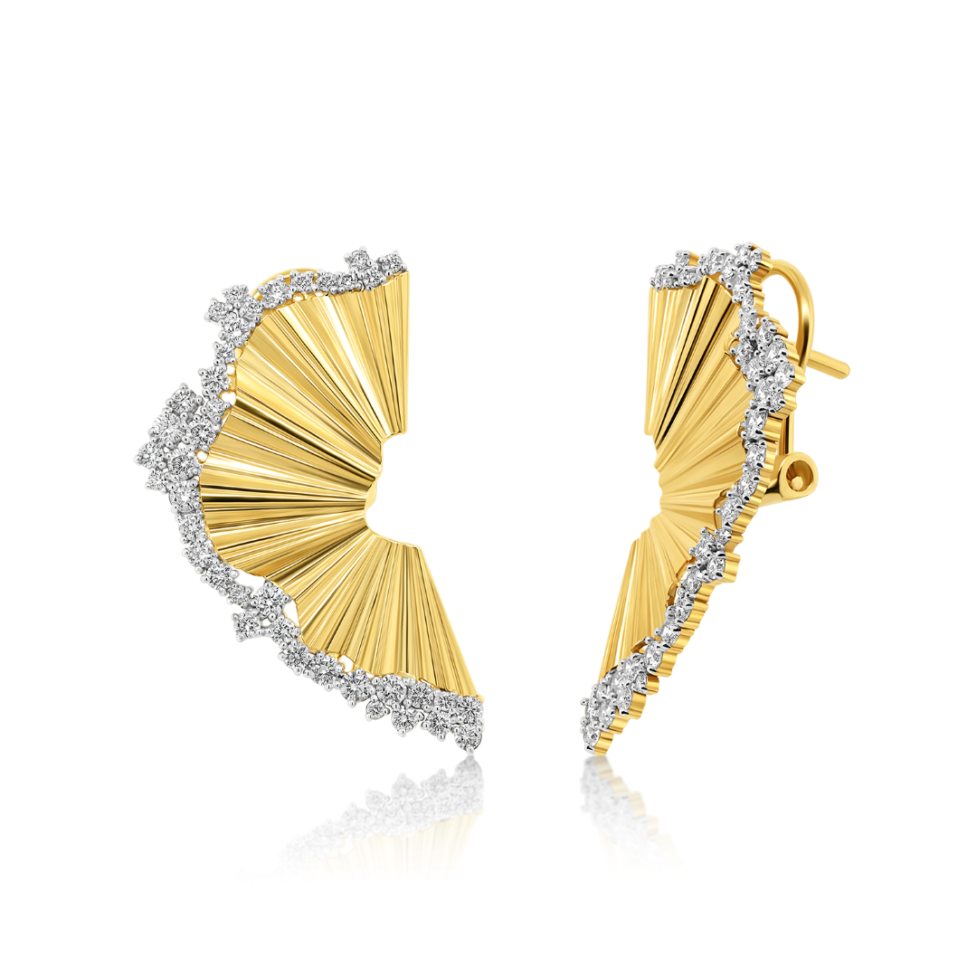 Cercei cu design inedit din aur galben 14K cu Diamante naturale round brilliant.
