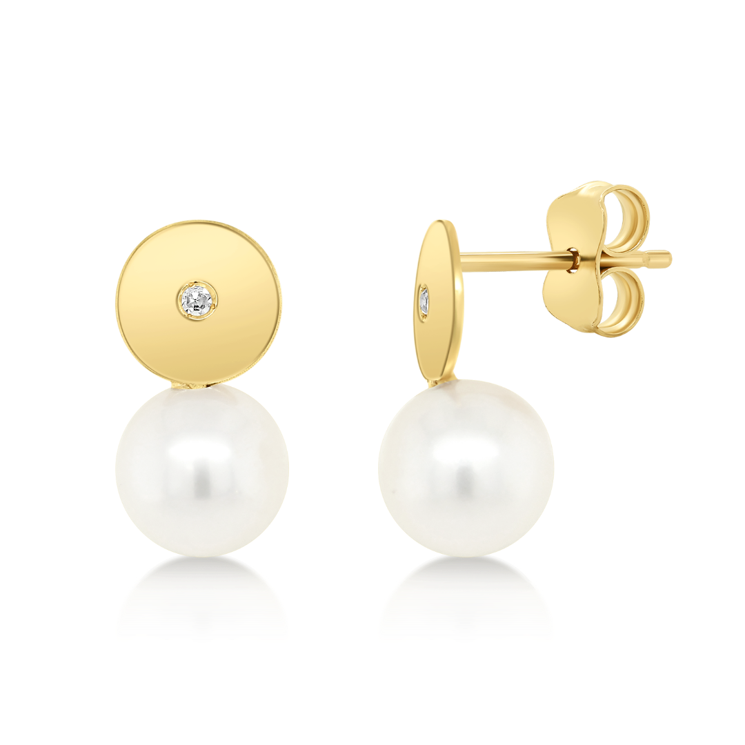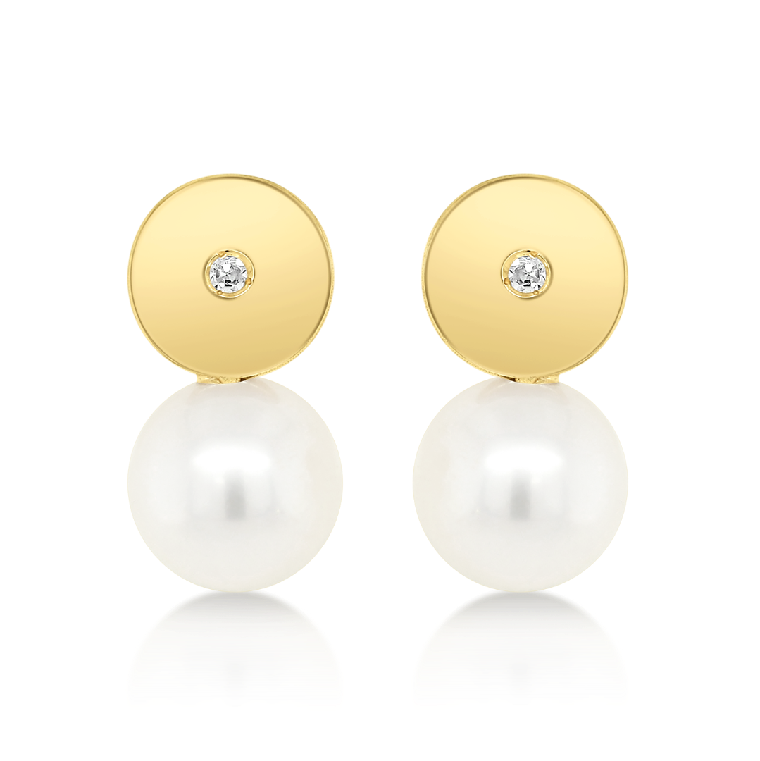Cercei din aur galben de 14K cu Diamante naturale și Perle de apă dulce.