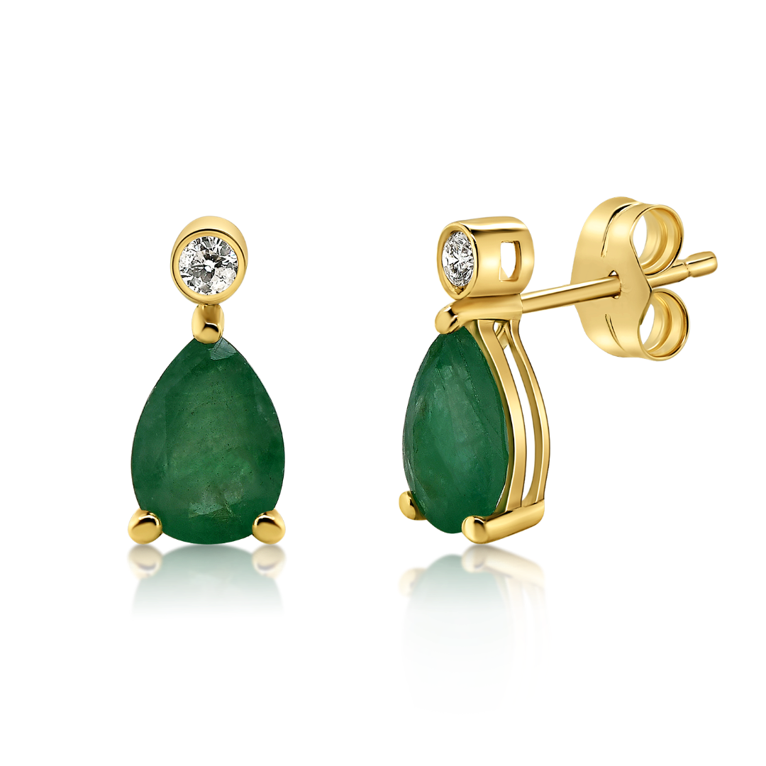 Cercei din aur galben de 14K cu Smaralde și Diamante naturale