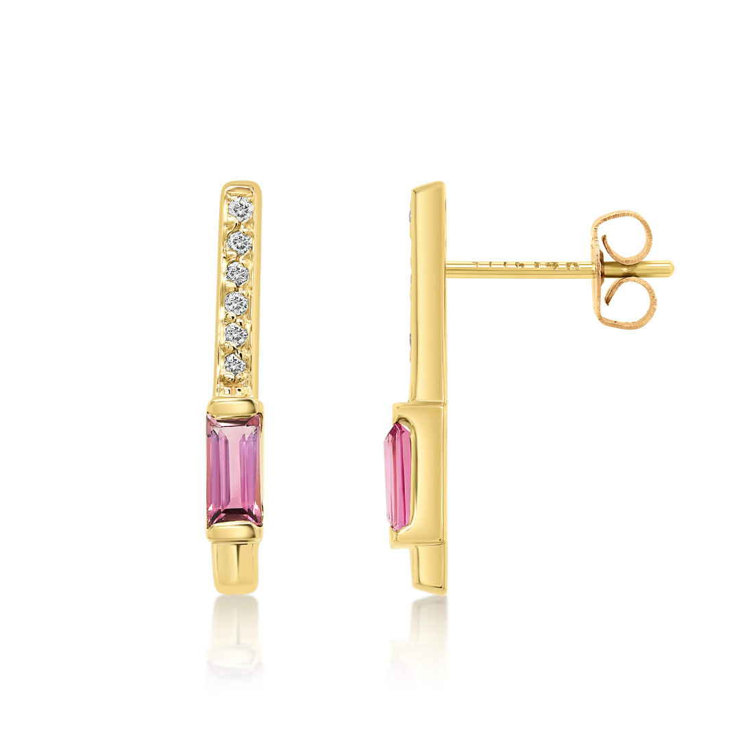Cercei din aur galben de 14K cu Turmaline și Diamante naturale