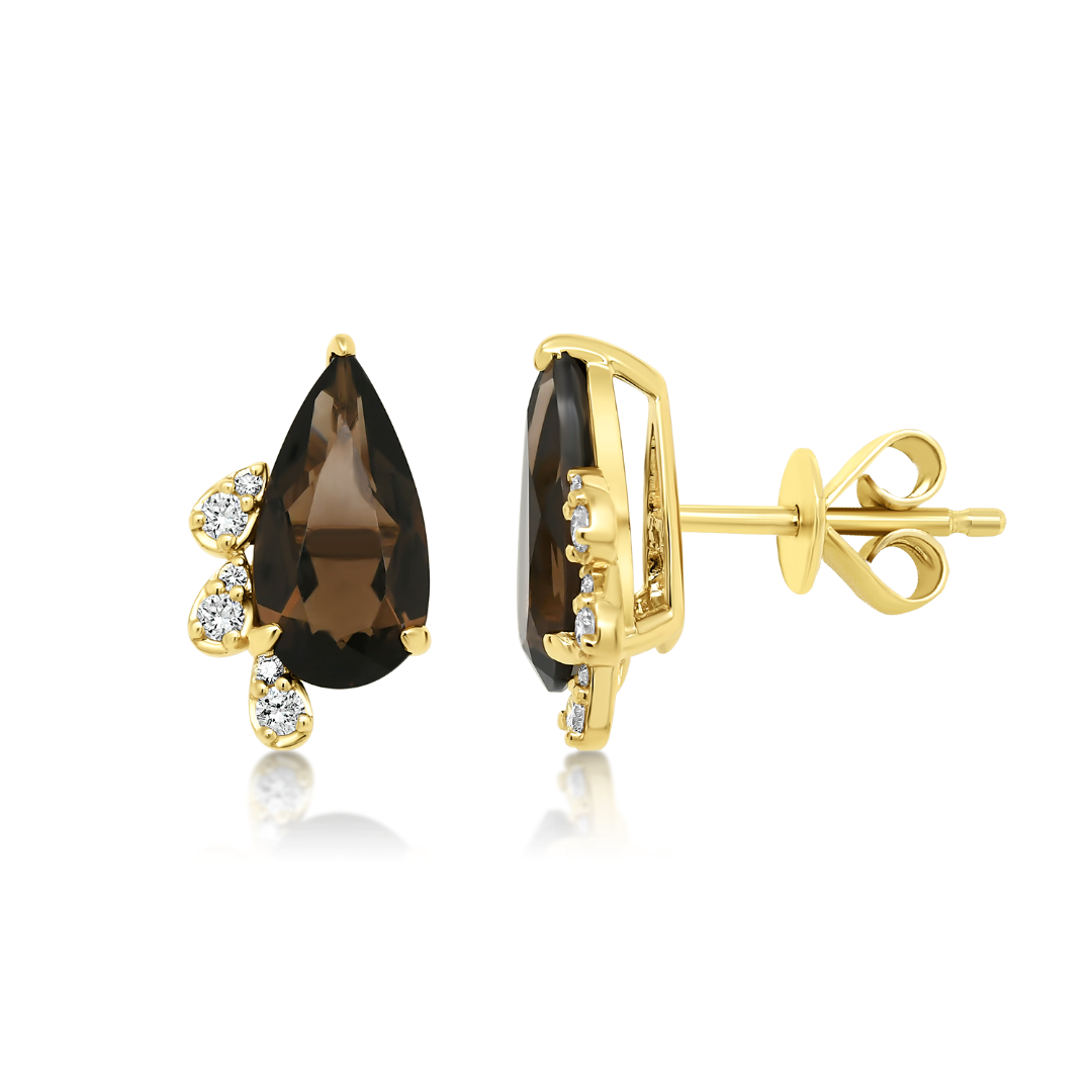 Cercei din aur galben de 18K cu Smoky Quartz și Diamante naturale