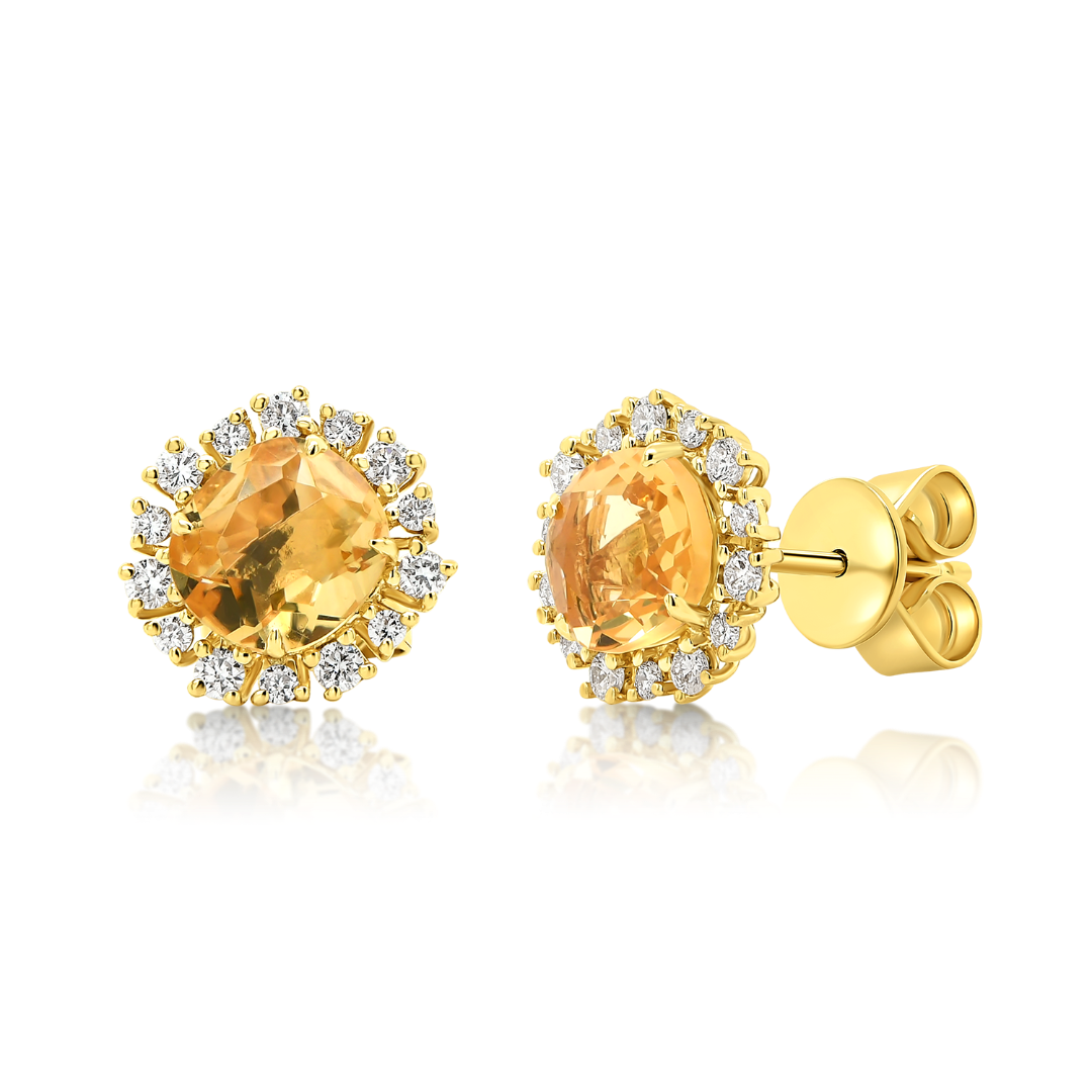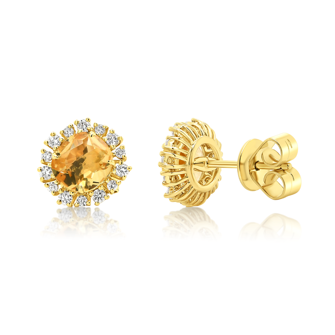 Cercei din aur galben de 18K cu Citrin și Diamante naturale