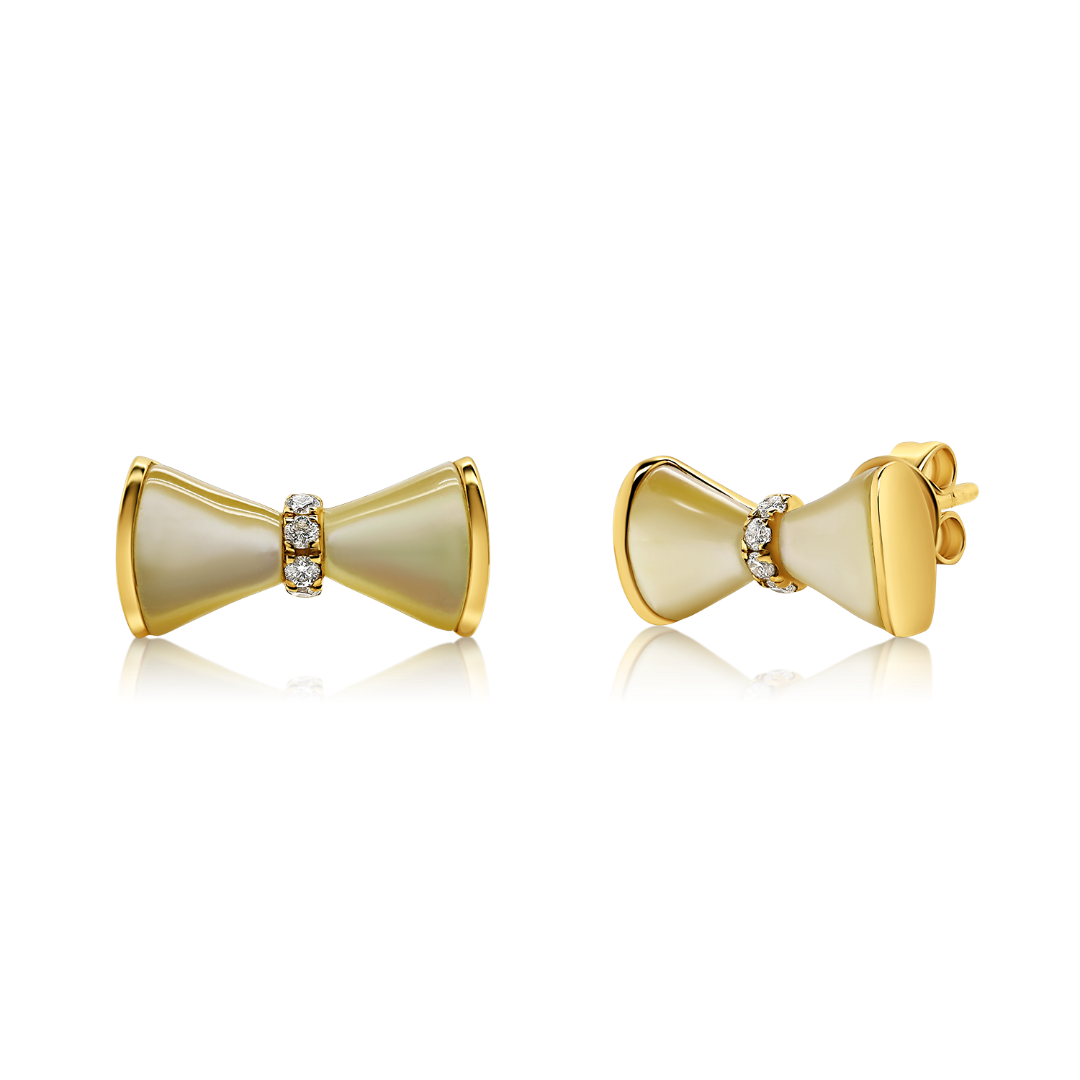 Cercei din aur galben de 18K, cu Sidef și Diamante naturale