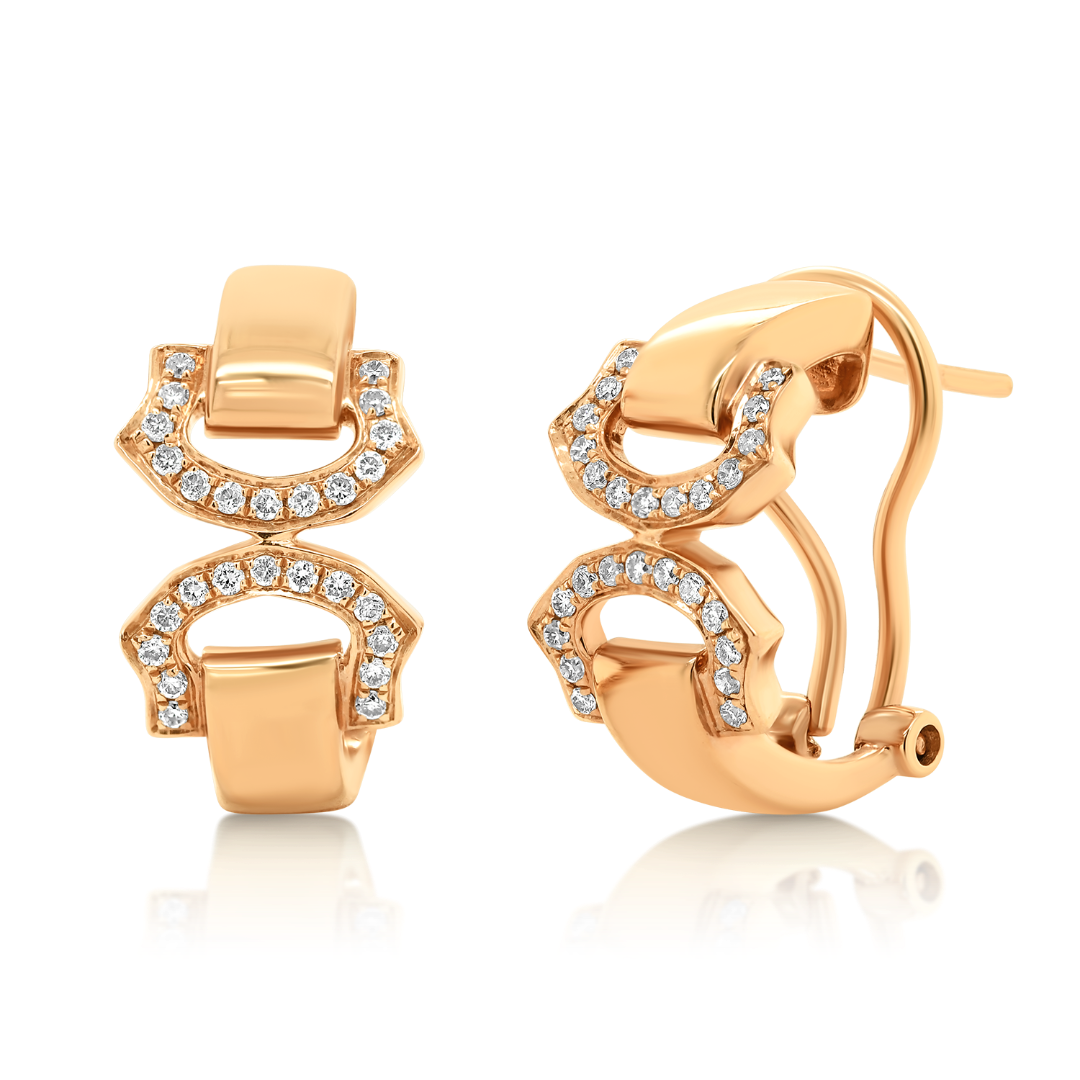 Cercei din aur roz de 18K, încrustați cu 52 de Diamante naturale Round Brilliant cu o greutate totală de 0.25ct.