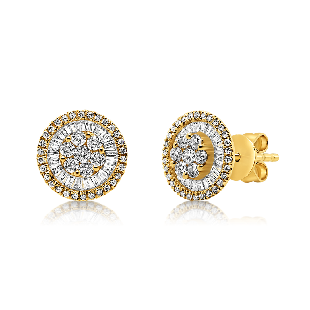 Cercei din aur galben de 18K, încrustați cu Diamante Baguette de 0.171ct. și 74 de Diamante Round Brilliant de 0.288ct.