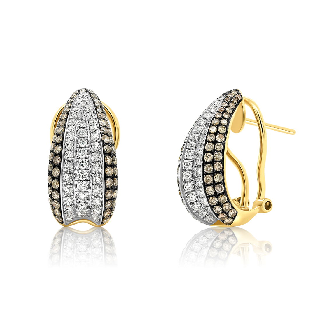 Cercei din aur galben de 18K, cu 78 de Diamante incolore de 0.81ct și 140 de Diamante maro de 1.05ct.