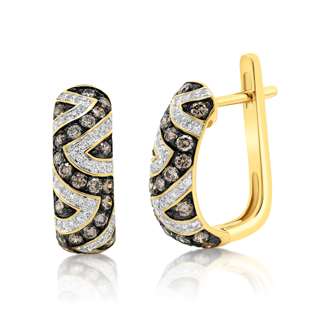 Cercei din aur galben de 18K, încrustați cu Diamante Champagne și Diamante incolore.