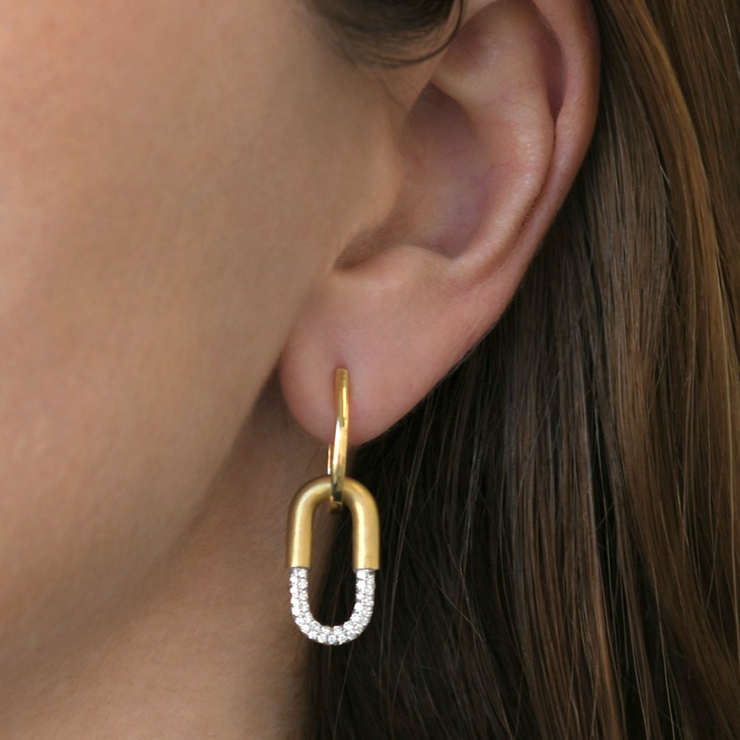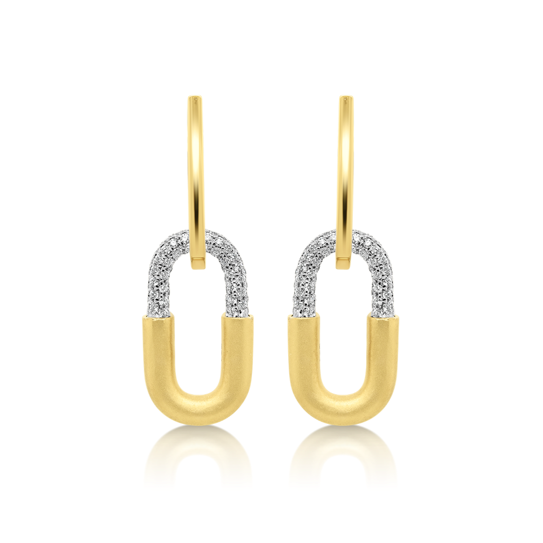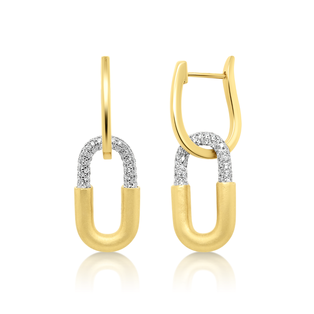 Cercei din aur galben de 18K, cu elemente satinate și 186 de Diamante Brilliant cut de 0.80ct.