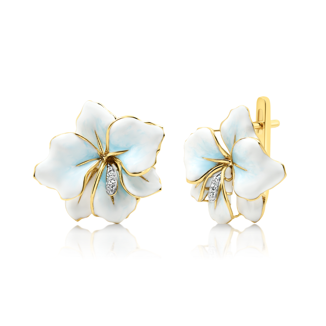 Cercei din aur galben de 18K cu Email alb și Diamante naturale