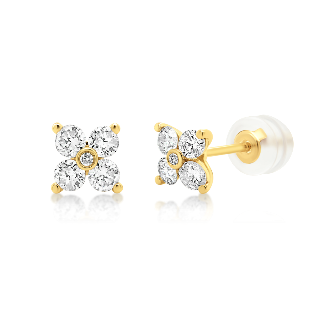 Cercei din aur galben de 18K cu Diamante naturale Round Brilliant