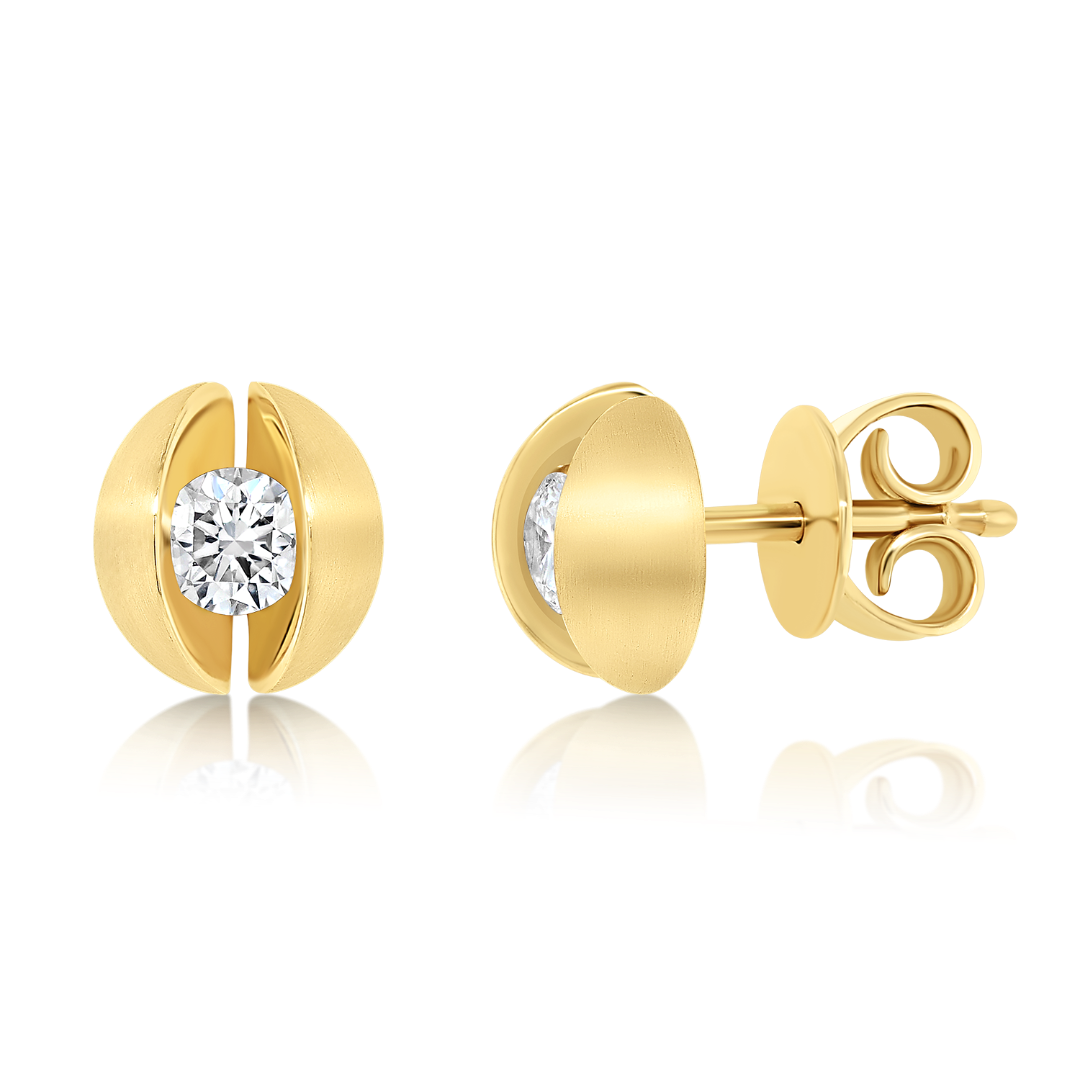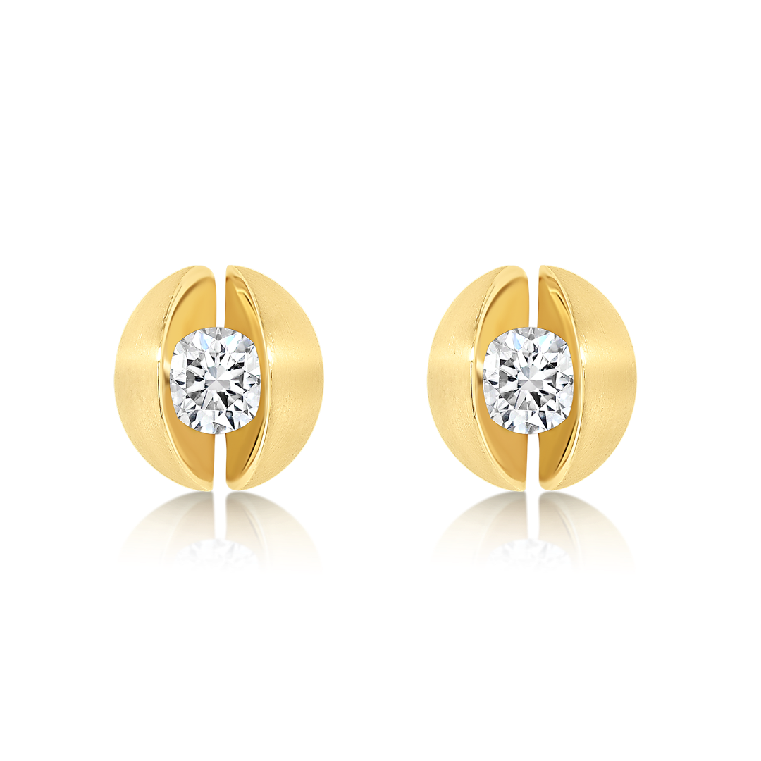 Cercei din aur galben de 18K cu două Diamante naturale Round Brilliant de 0.36ct.