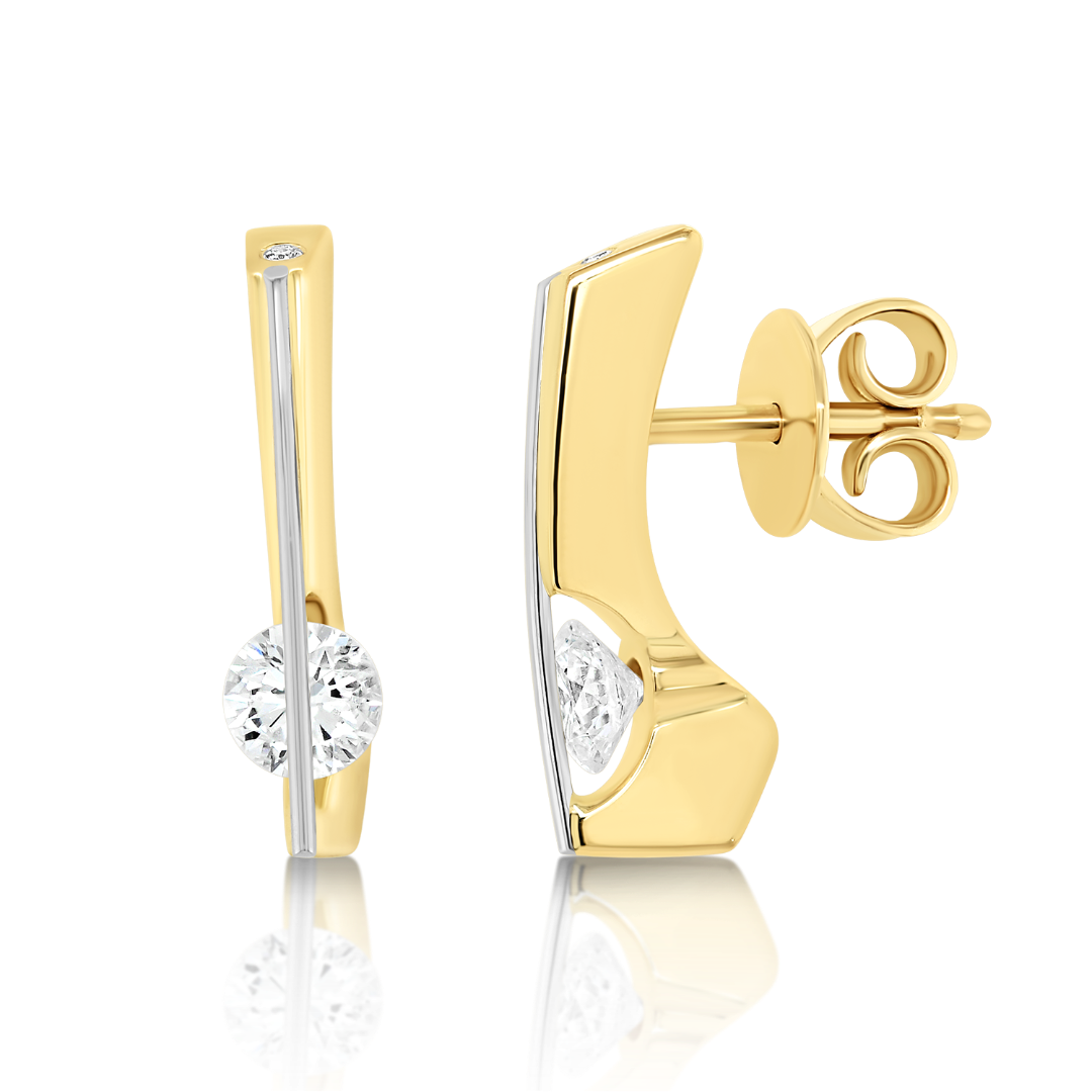 Cercei din aur galben de 18K cu 4 Diamante naturale Round Brilliant și element din platină.
