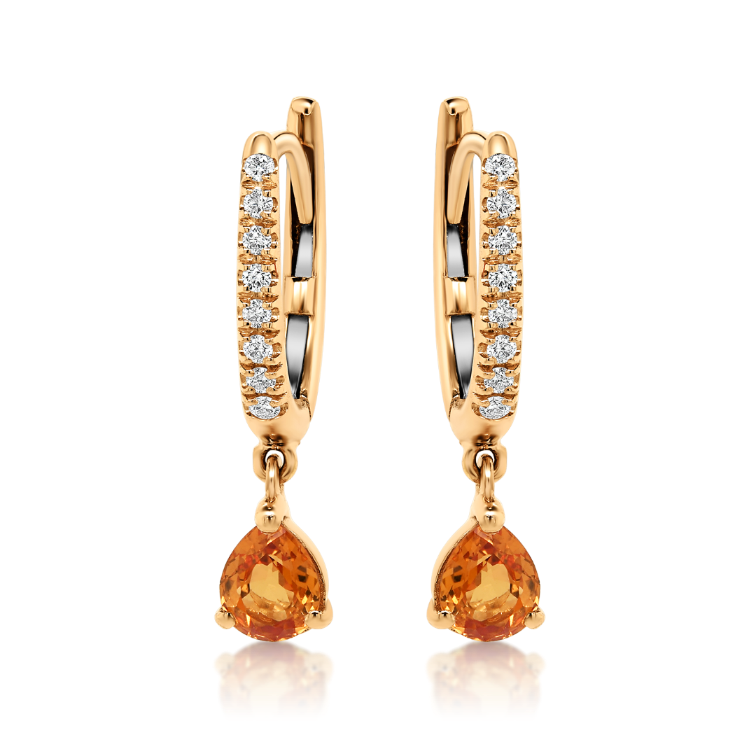 Cercei din aur roz de 18K, cu Diamante naturale și Safire Orange