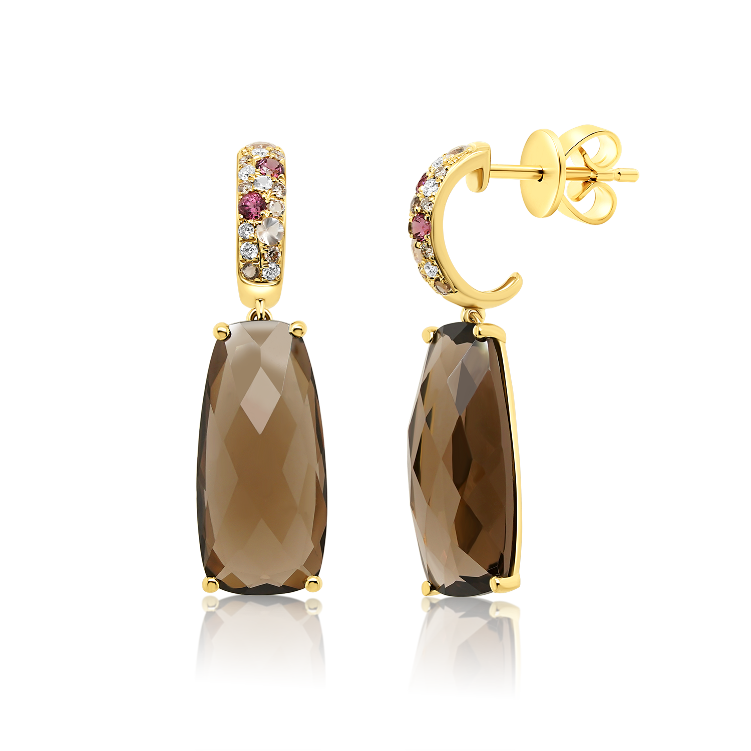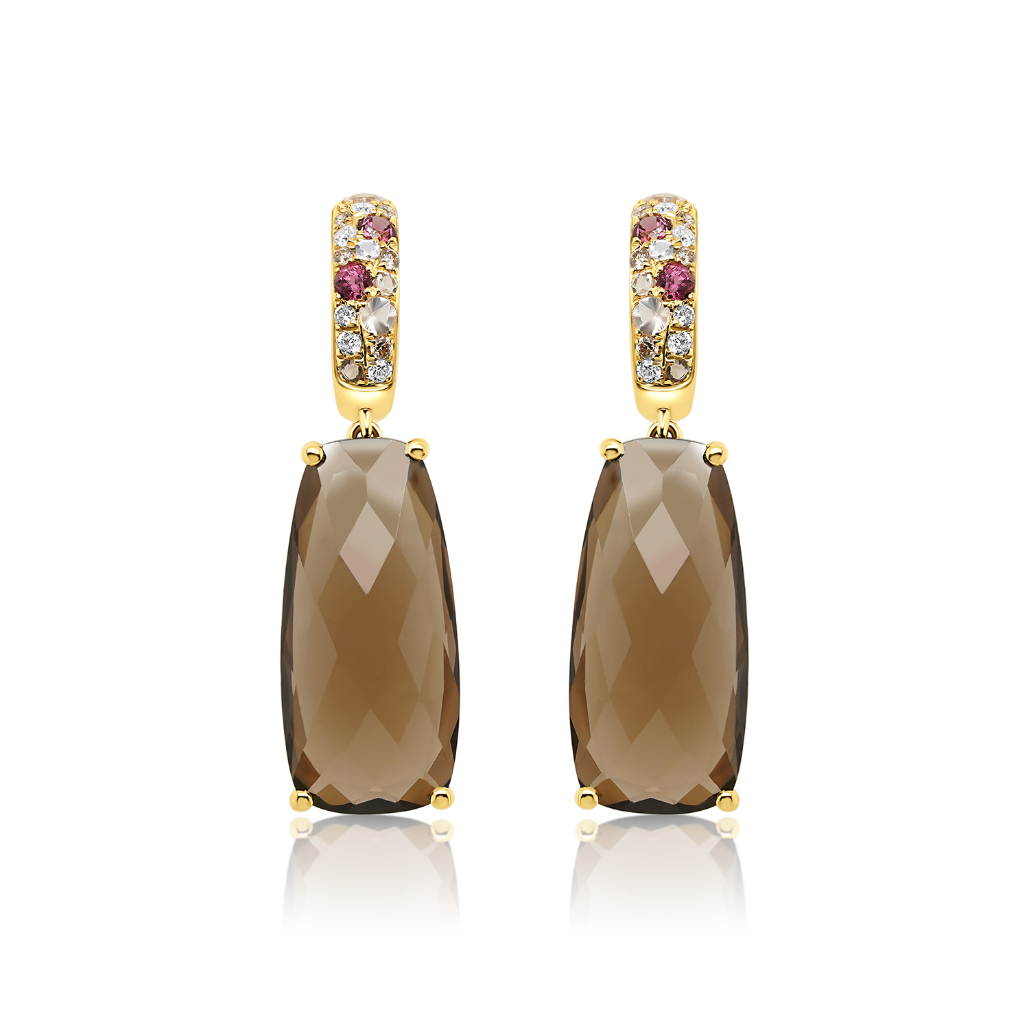 Cercei din aur galben de 18K cu Granate, Smoky Quartz și Diamante naturale