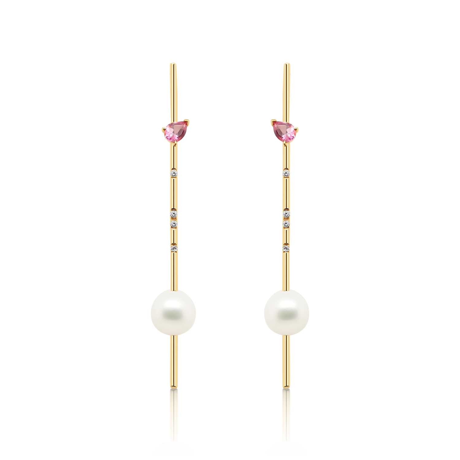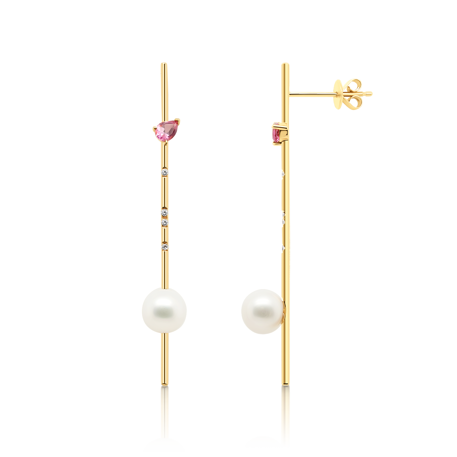 Cercei din aur galben de 18K cu Perle, Rubelite și Diamante naturale