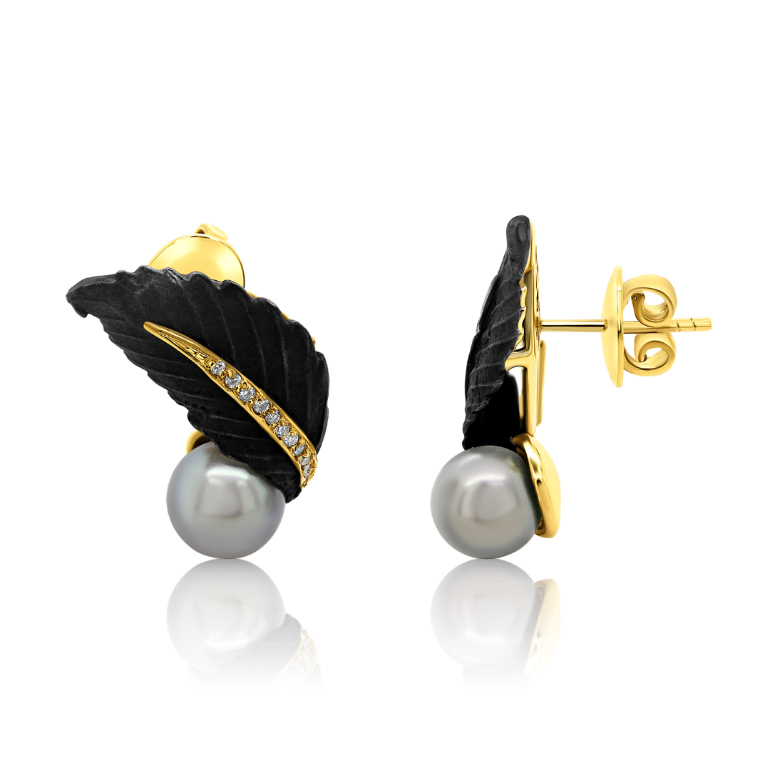 Cercei din aur galben de 18K cu cu rodiu negru, Perle și Diamante naturale.
