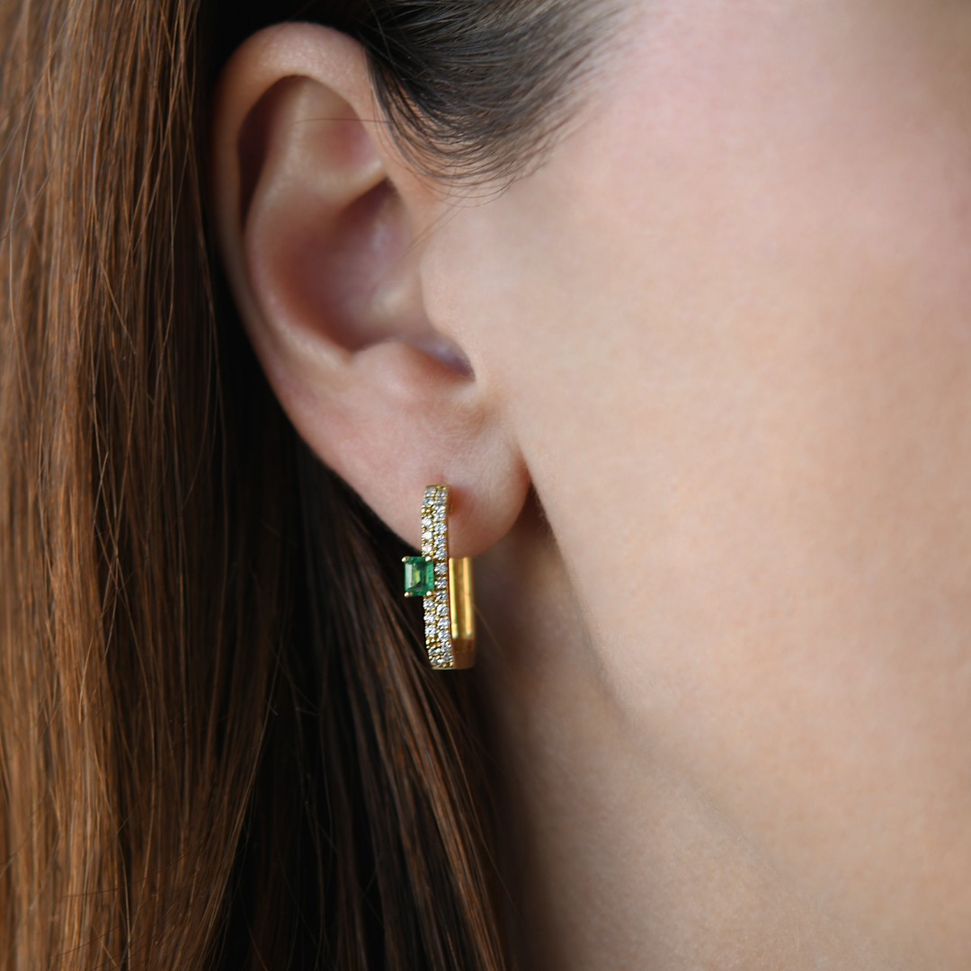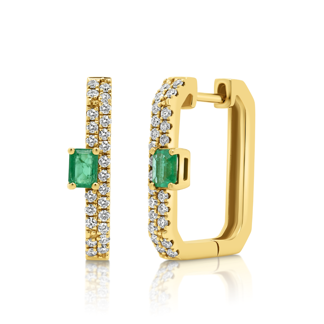 Cercei din aur galben de 18K cu Smaralde și Diamante naturale
