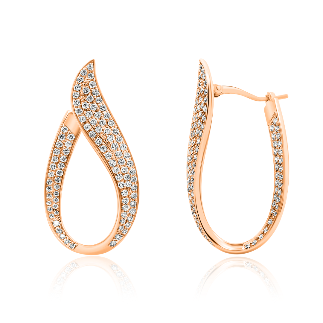 Cercei din aur roz de 18K încrustați cu Diamante Round Brilliant de 1.06ct.