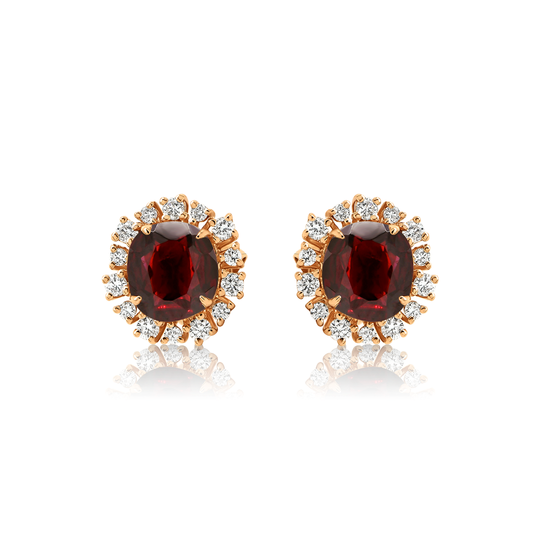 Cercei din aur roz de 18K cu Granat și Diamante naturale