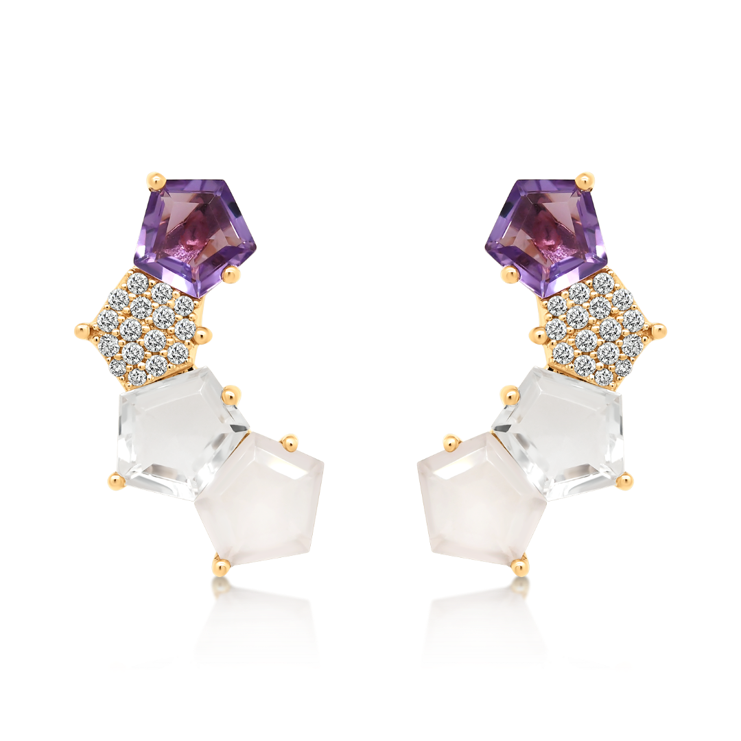 Cercei din aur roz de 18K cu Ametiste, Quartz și Diamante naturale