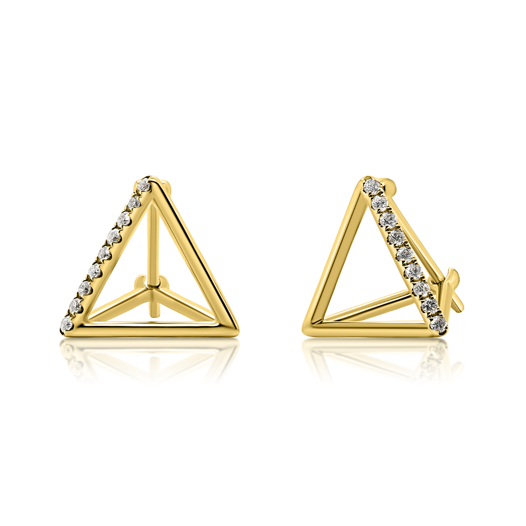 Cercei cu design geometric din aur galben de 14K, încrustați cu 18 Diamante naturale Brilliant cut.