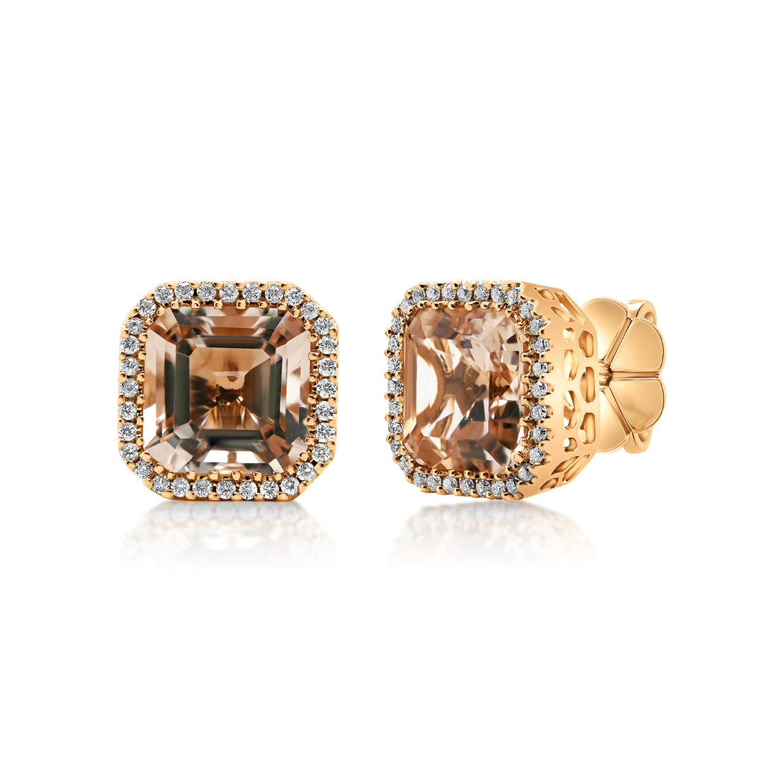 Cercei din aur roz cu Diamante naturale și pietre Morganit
