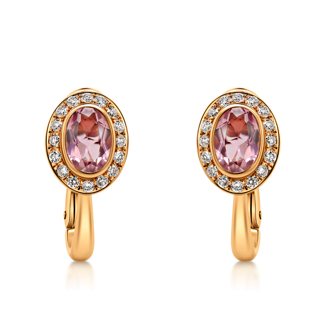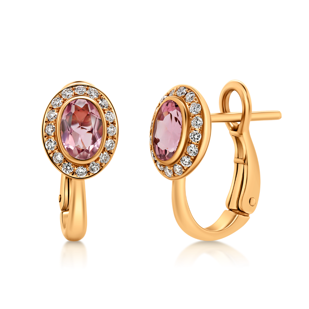 Cercei din aur roz de 18K cu Turmalin Roz și Diamante naturale
