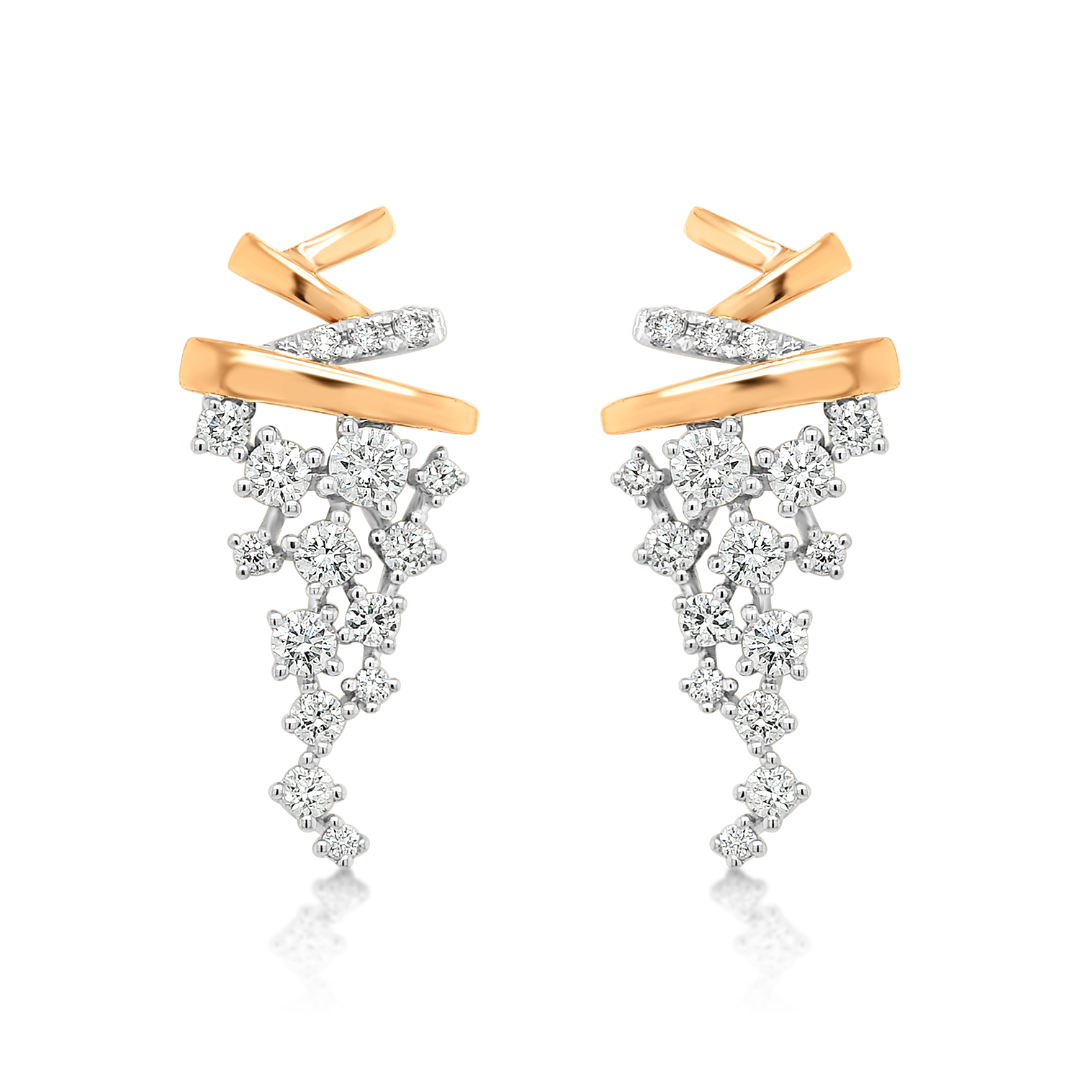 Cercei din aur roz de 18K și elemente din aur alb cu 32 de Diamante naturale de 0.447ct.