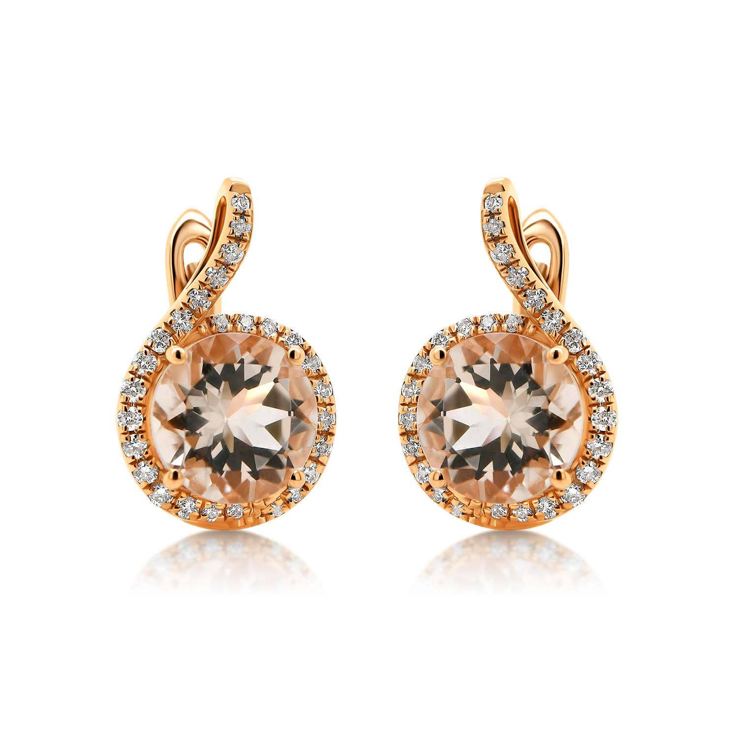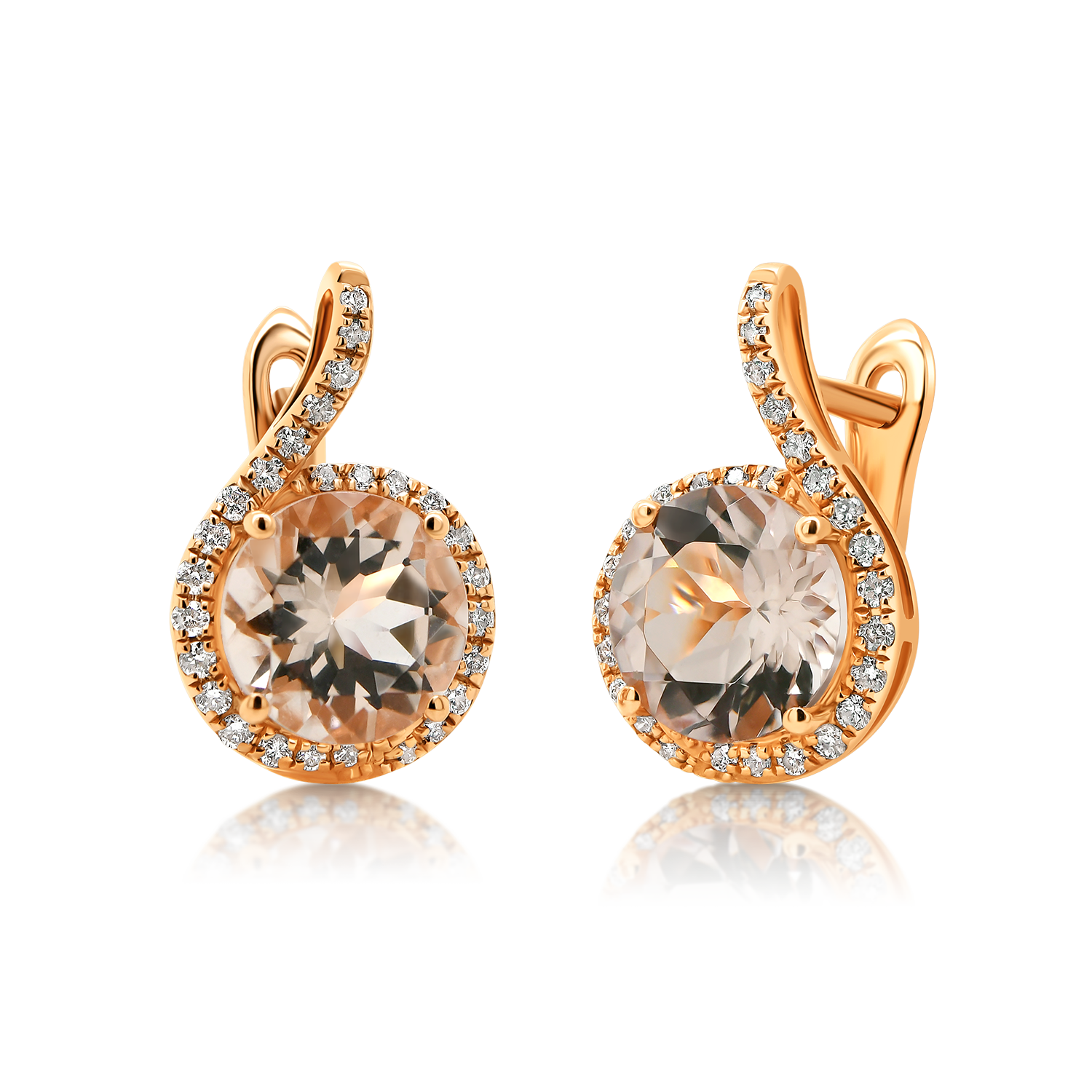 Cercei din aur roz de 14K cu Morganite și Diamante naturale