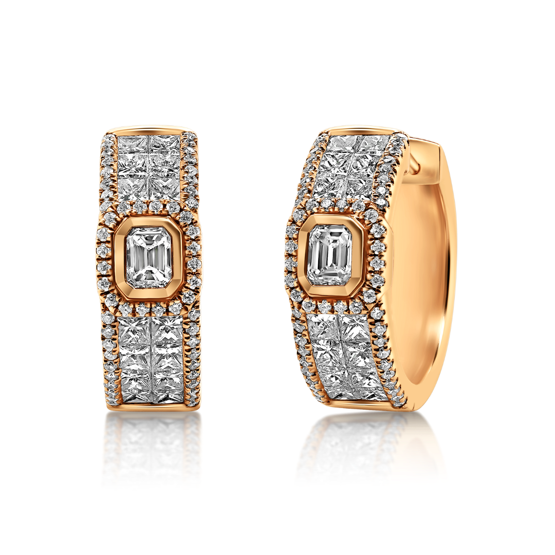 Cercei din aur roz de 18K încrustați cu Diamante naturale Round Brilliant, Emerald și Princess Cut cu o greutate totală de 1.48ct.