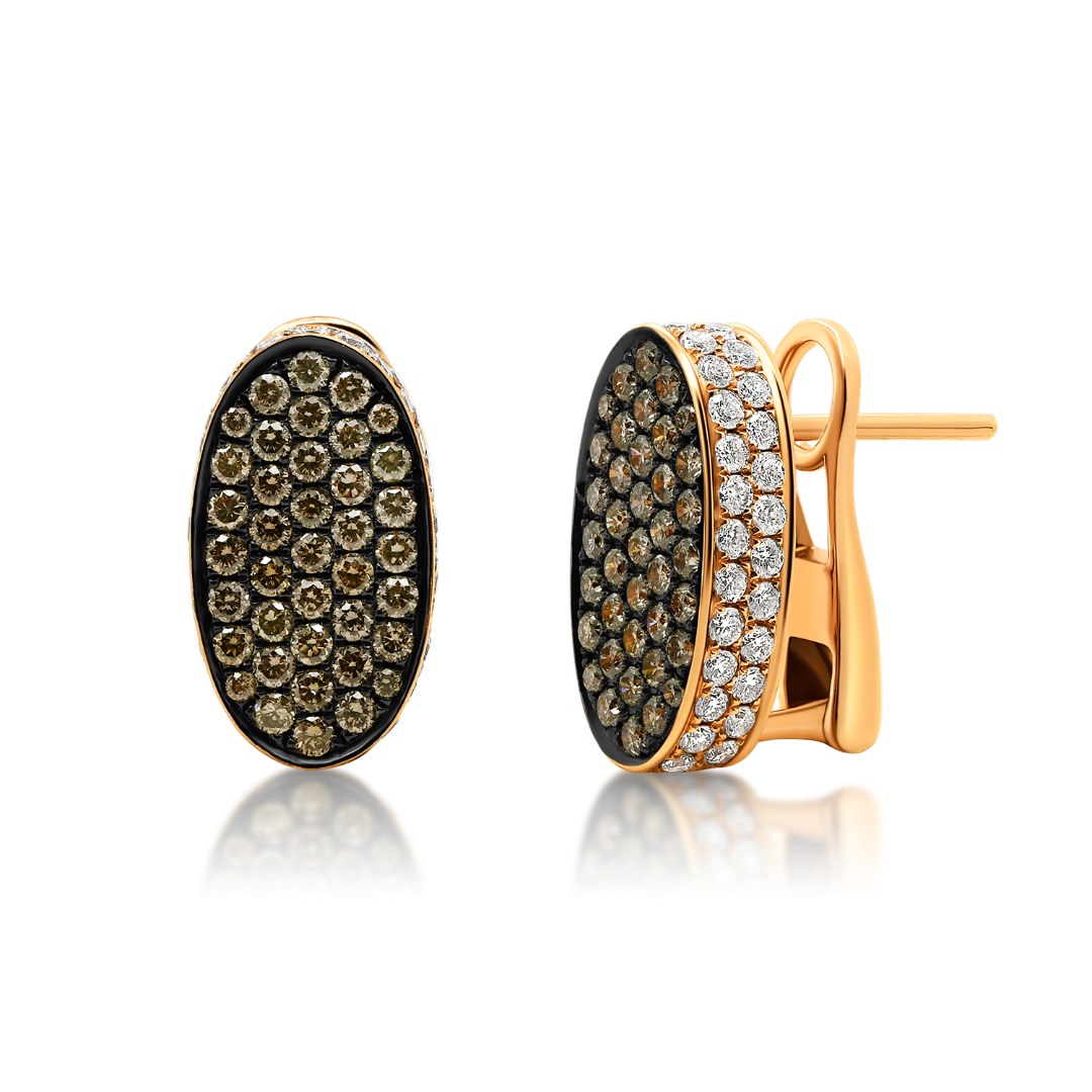 Cercei cu rodiu negru din aur roz de 18K, încrustați cu Diamante incolore și Champagne cu o greutate totală de 1.55ct.