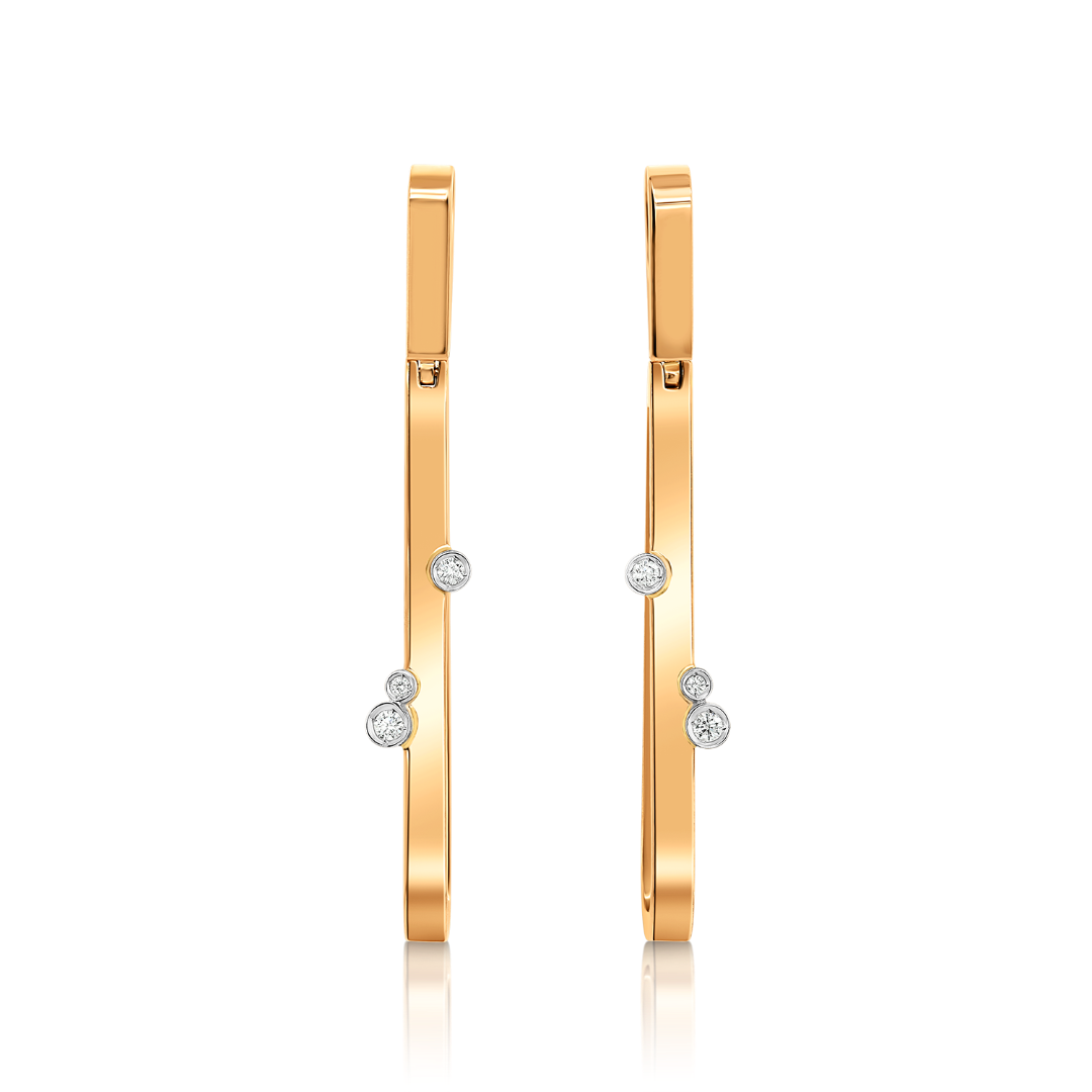 Cercei din aur roz de 18K, încrustați cu 6 Diamante Round Brilliant de 0.08ct.