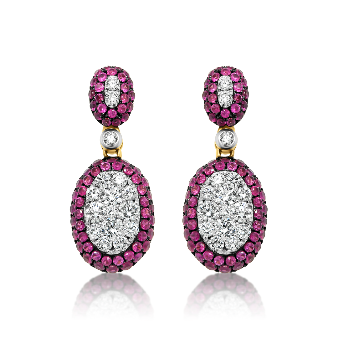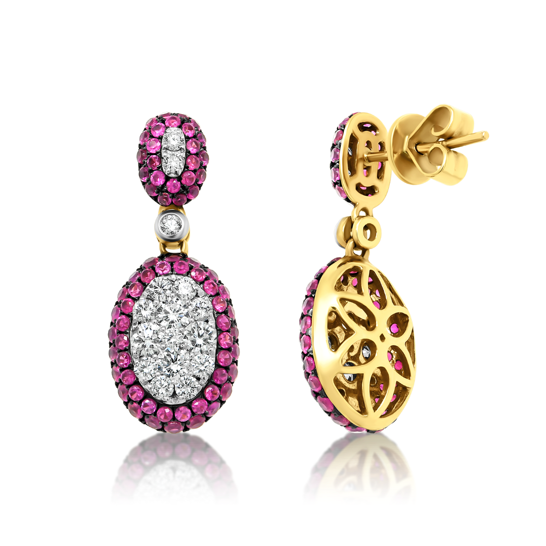 Cercei din aur roz de 18K cu Diamante incolore și roz naturale.