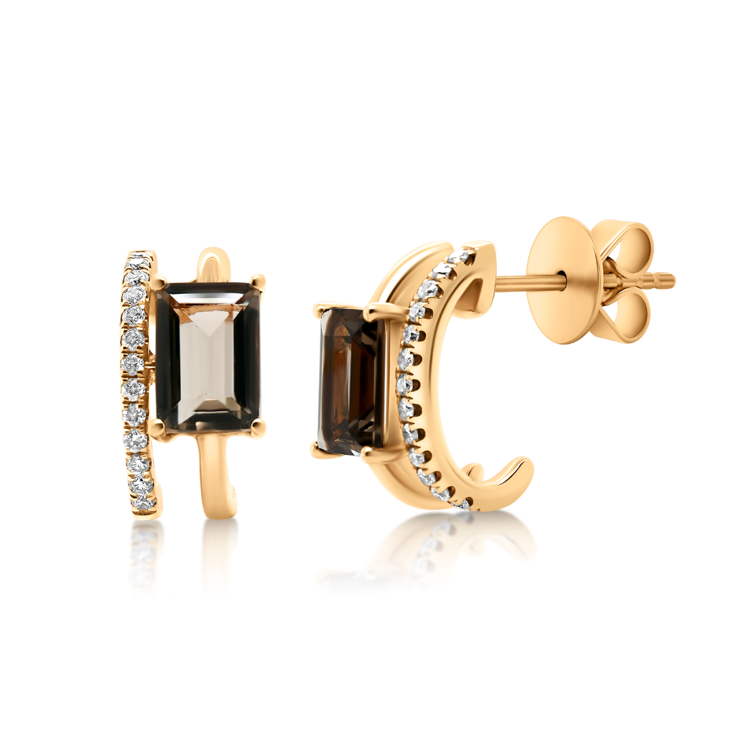 Cercei din aur roz de 18K cu Diamante naturale și Smoky Quartz