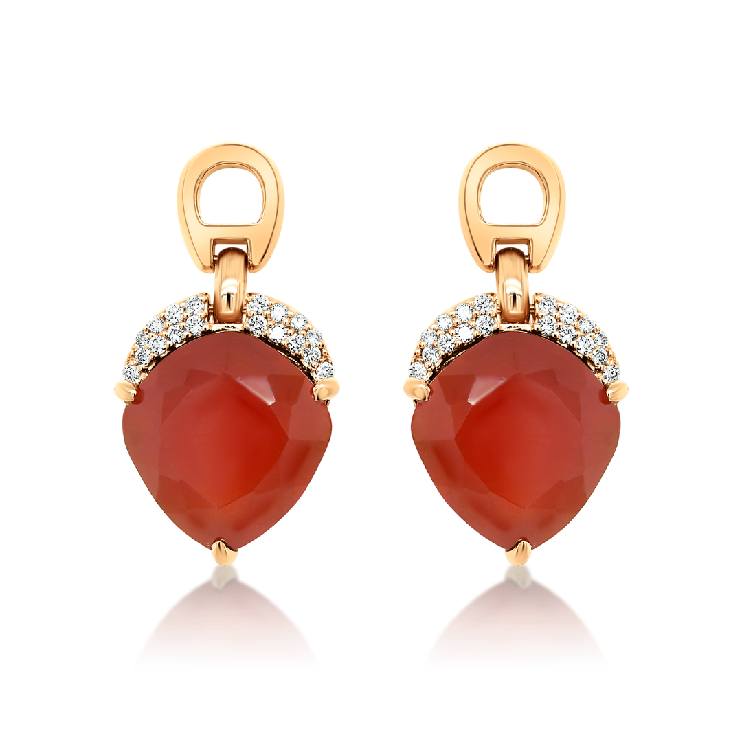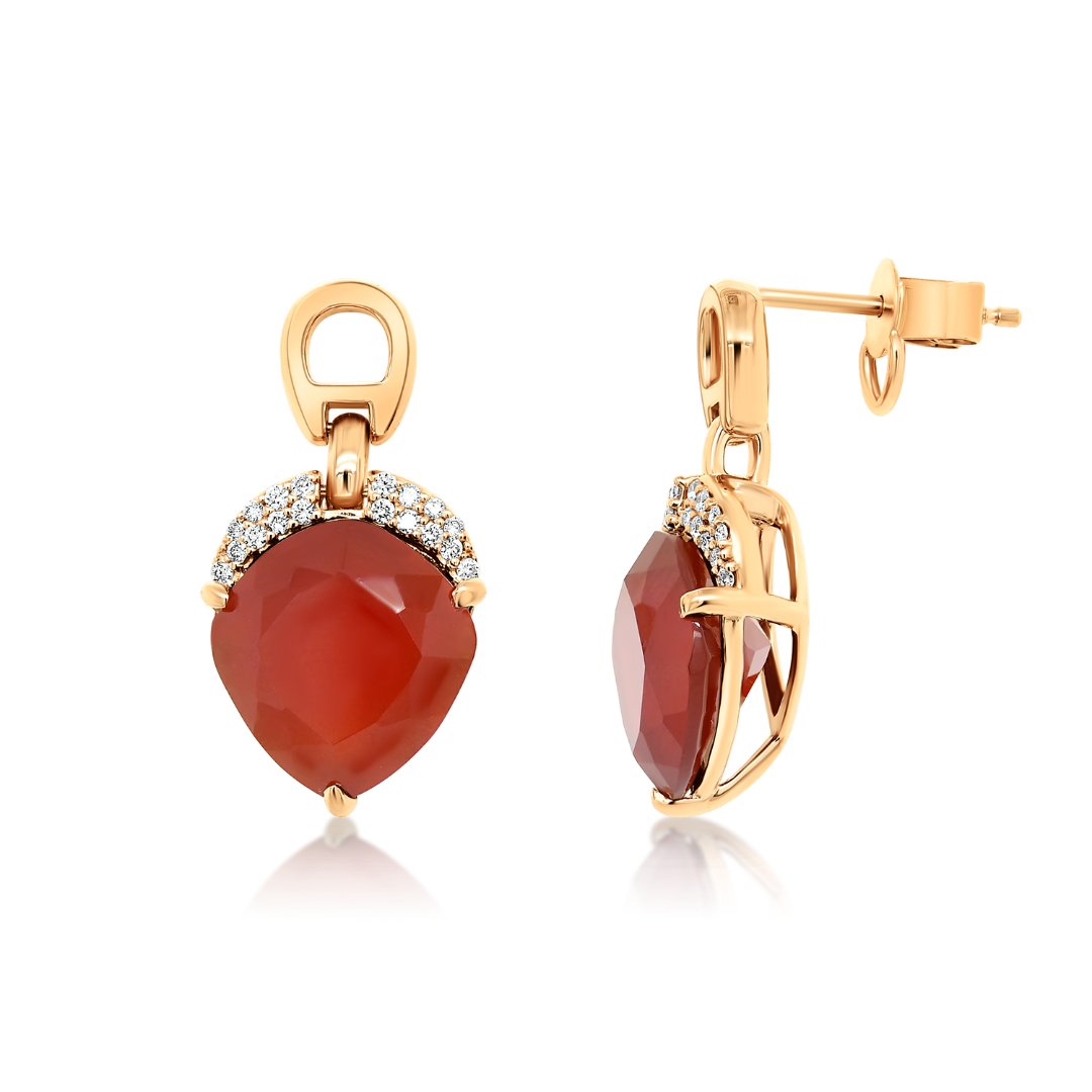 Cercei din aur roz de 18K cu 36 de Diamante naturale Round Brilliant și două Agate.