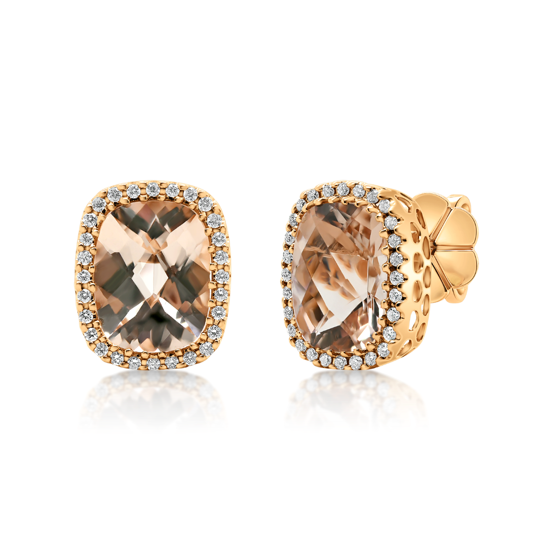 Cercei din aur roz de 18K cu Morganite și Diamante naturale