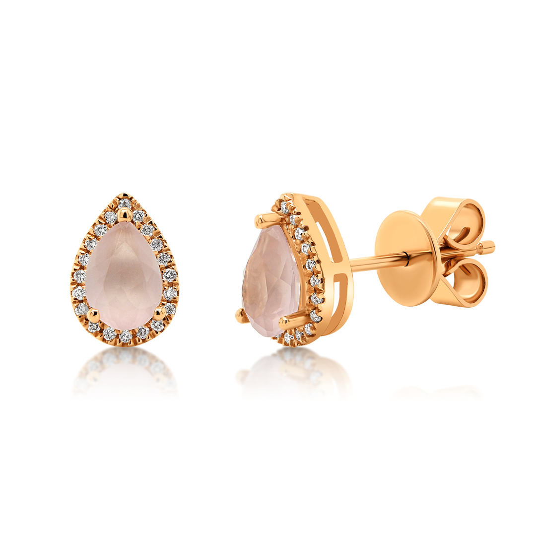 Cercei din aur roz de 18K cu Pink Quartz și Diamante naturale