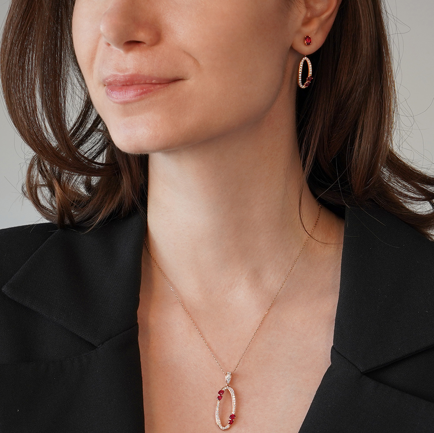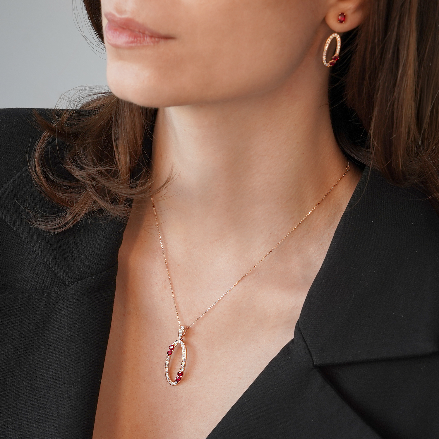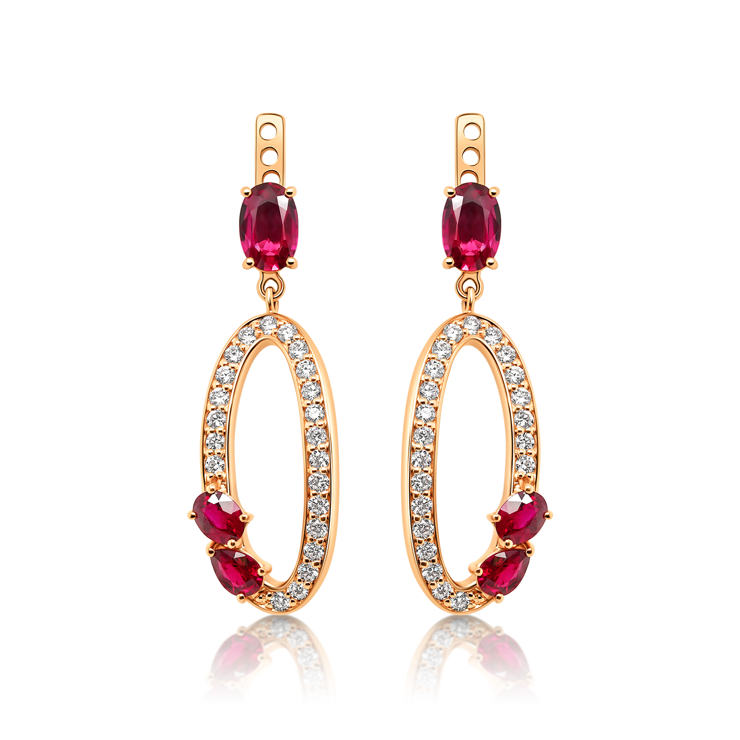 Cercei din aur roz de 18K cu Rubine și Diamante naturale