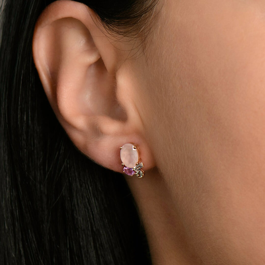 Cercei din aur roz de 18K cu Safire Fancy, Quartz si Diamante naturale