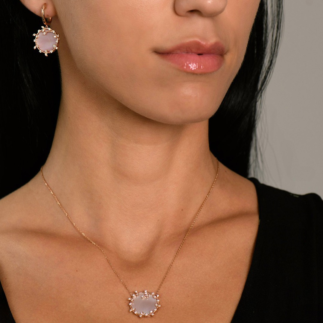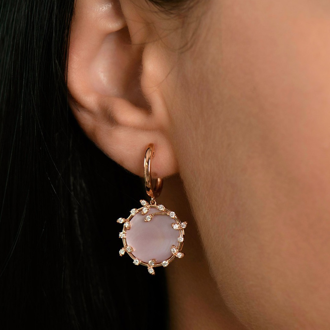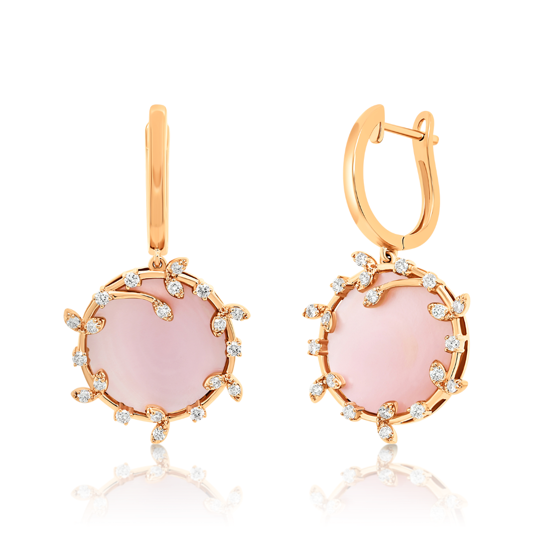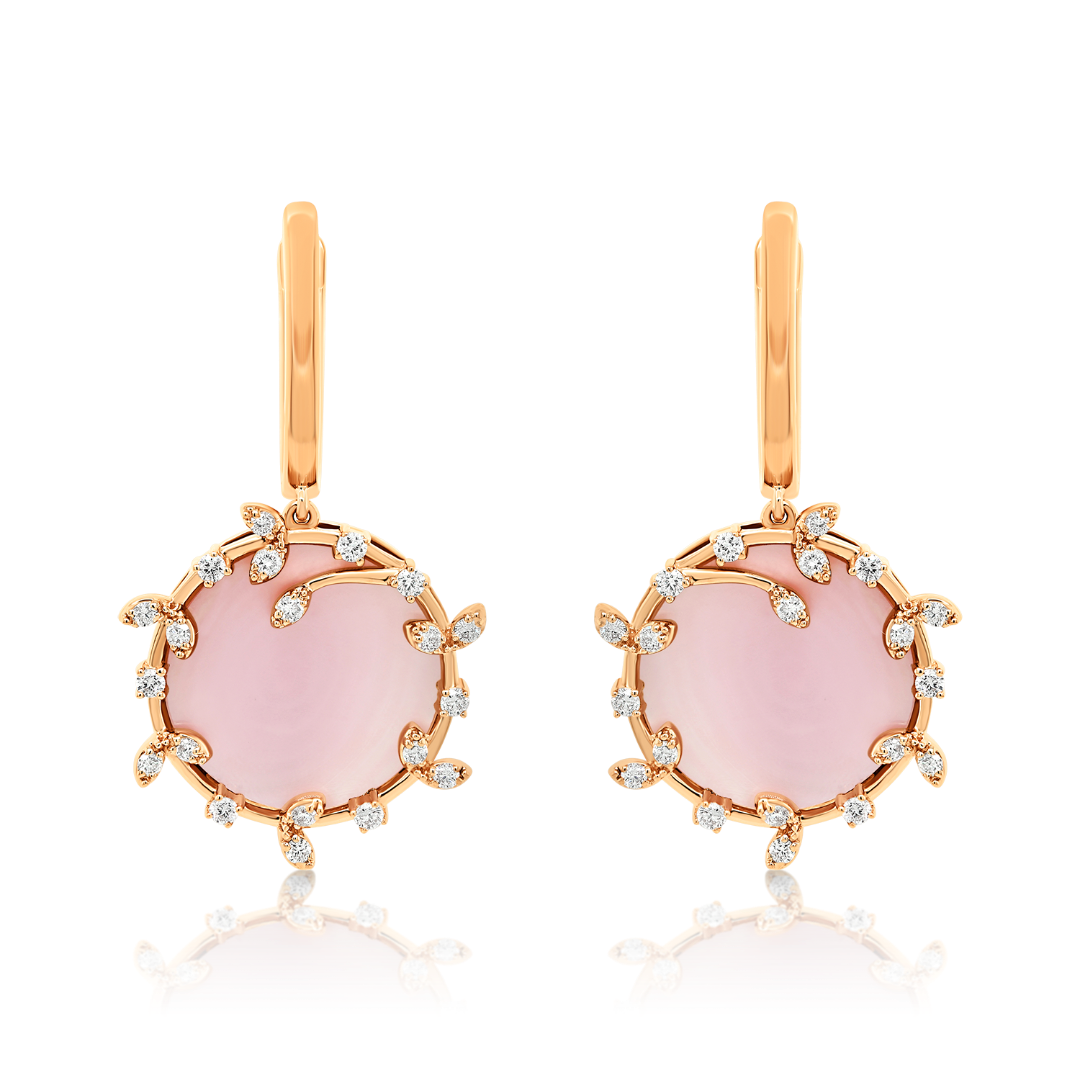 Cercei din aur roz de 18K cu Sidef și Diamante naturale