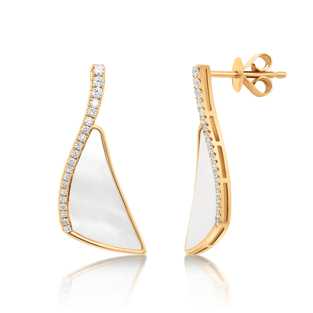 Cercei din aur roz de 18K cu Sidef de 2.46ct și 40 de Diamante naturale Round Brilliant de 0.264ct.