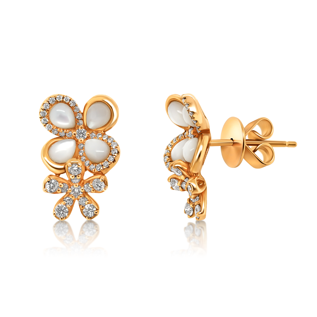 Cercei din aur roz de 18K cu Sidef și Diamante naturale Round Brilliant de 0.55ct.