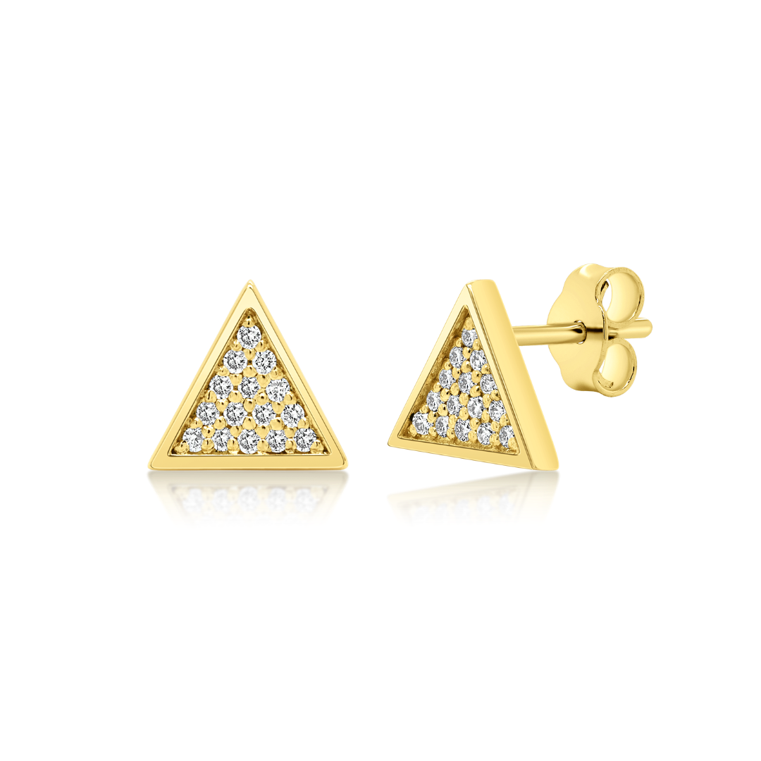 Cercei triunghi din aur galben de 18K cu 30 de Diamante Round Brilliant de 0.15ct.