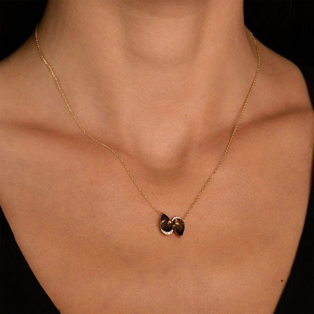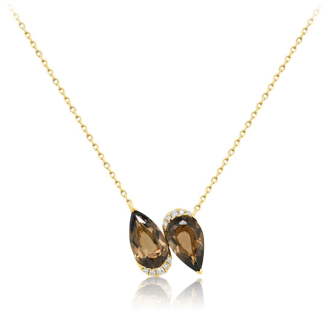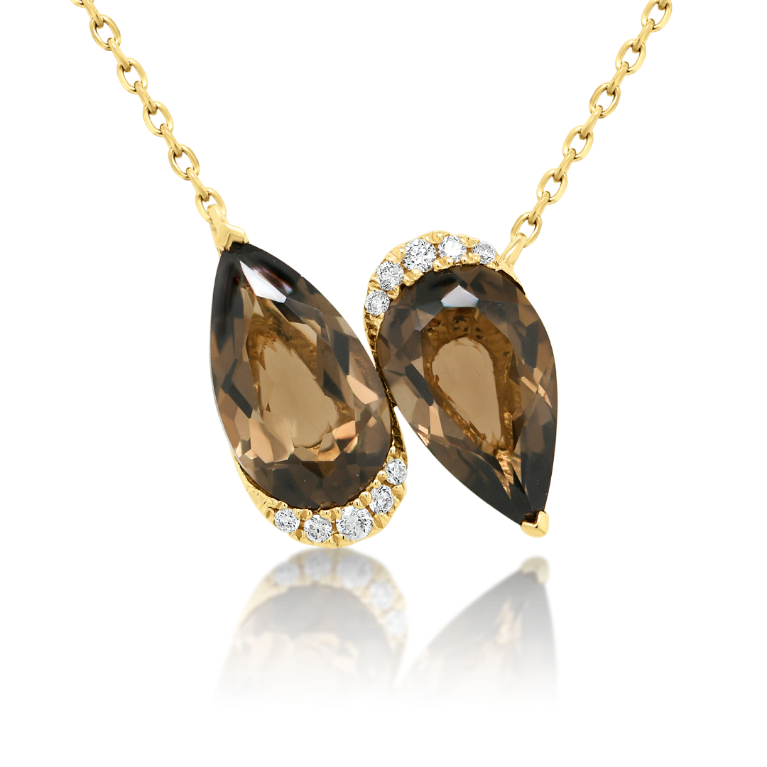 Lanț din aur galben de 18K și pandantiv cu Smoky Quartz și Diamante naturale