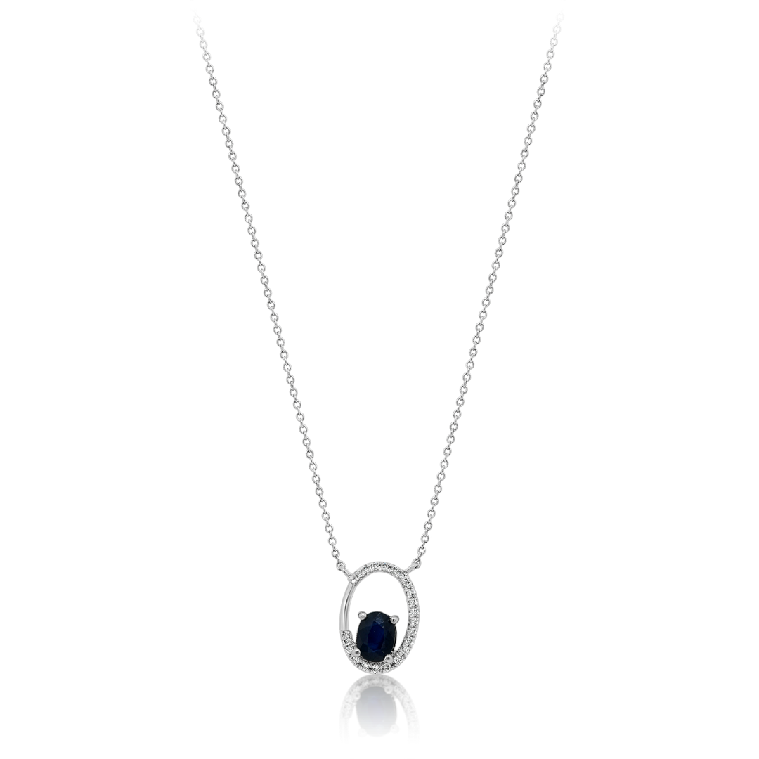Lanț din aur alb de 18K și pandantiv cu Safir și Diamante naturale