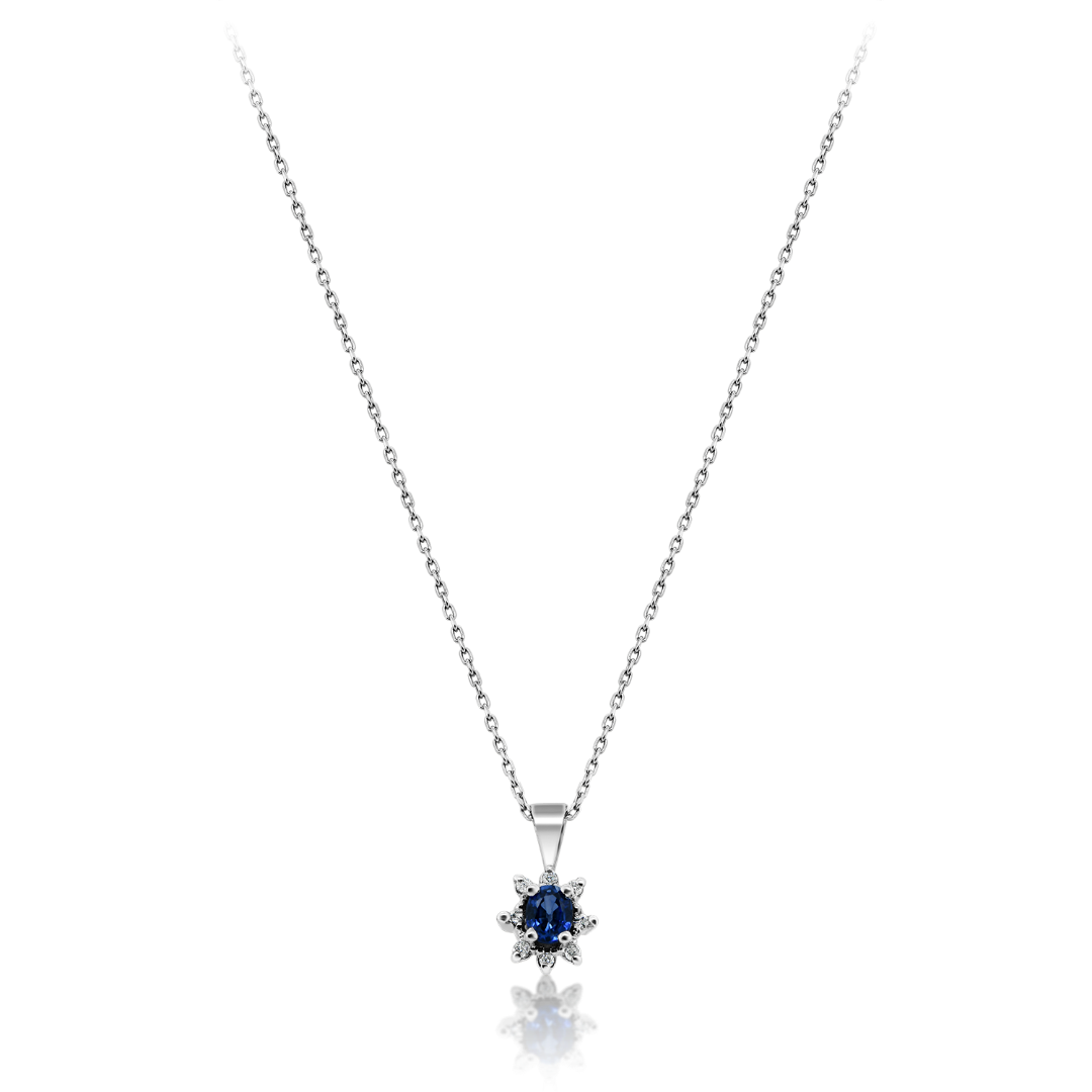 Colier din aur alb de 18K, cu pandantiv încrustat cu 6 Diamante și Safir.