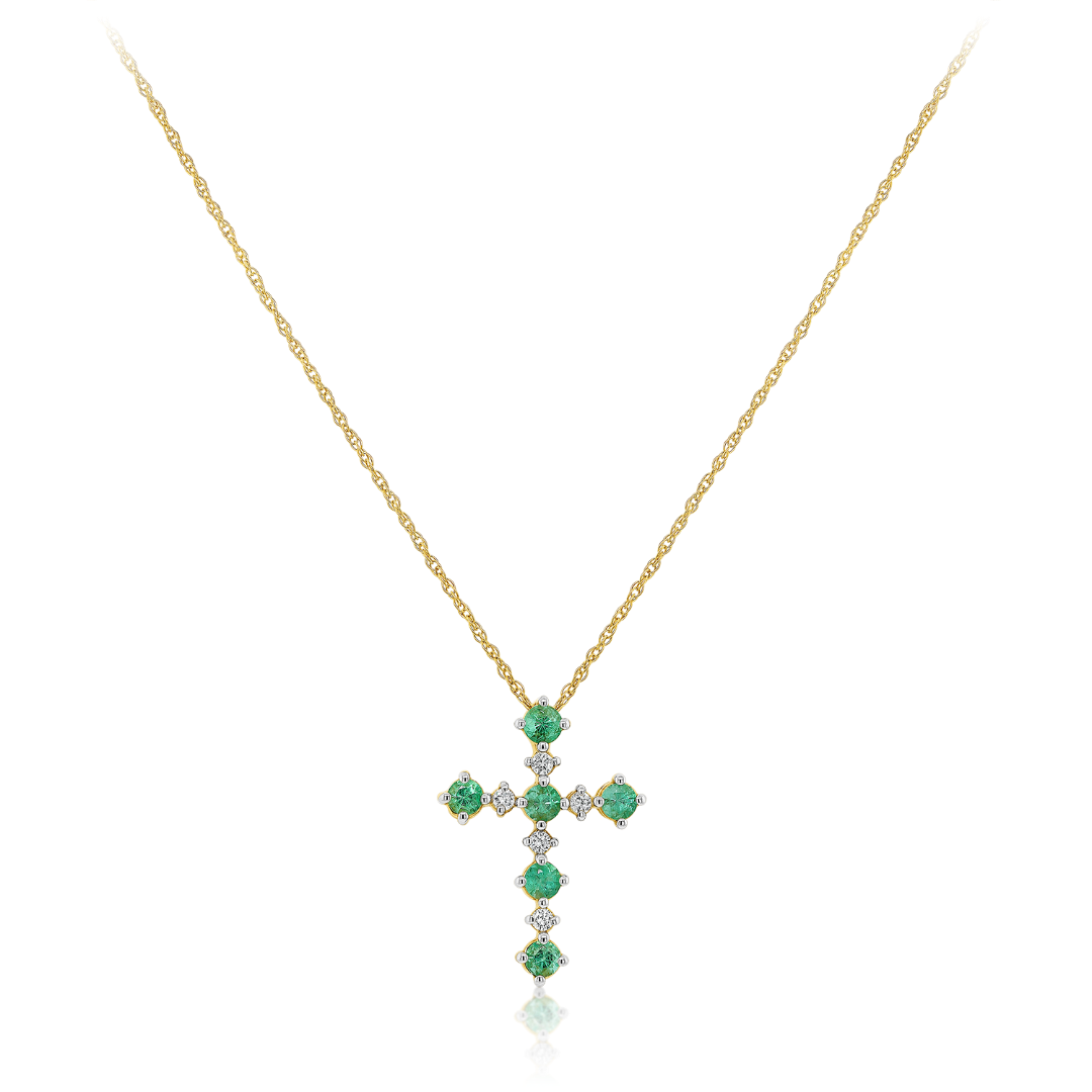 Colier din aur galben de 18K şi pandantiv tip cruce încrustat cu Diamante de 0.07ct.și Smaralde de 0.36ct.